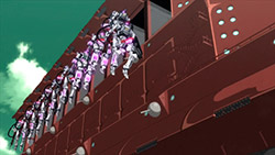 This series certainly has a few things going for it, like the unusual Joshua plotline and the flow of the mecha fighting, but overall I’d have to say it’s kind of crap. It’s corny – not the stalwart and strident corn of older mecha series, but the slick, oily corn of 2010s anime. The dialogue is dull, including exposition where characters flatly explain things to one another that both of them must already know. There are cliches everywhere. The mecha are colourful and move well but it reminds me of shows like Argevollen where we don’t get to see loads of cool gnarly mecha damage and destruction because it’s too difficult to show with CGI 3D models done on a budget. The worst part for me is that there aren’t really any engaging characters yet. Maybe if the princess develops a mean streak or something – but in a show like this I don’t really see it happening.