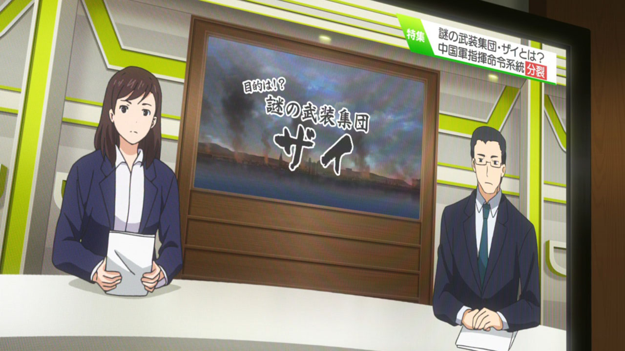 Ironically, from what I’ve heard, the first reaction among certain sections of the Japanese audience was that the show was “a cynical pandering to the Chinese market”. Why? Because even if the Xi might be a reference to President Xi, even if there’s lavish praise to the JASDF, and even if the plot is basically “Japan saves the world with superior technology” (although, to be honest, the “Japan has the best technology” trope is not even limited to Japan), the fact remains that:-The protagonist may be a Japanese national, but grew up in China and wants to go back.-His childhood friend (and future haremette) is Chinese.-China is portrayed as the unwarranted victim of heinous attacks, while Japan is portrayed as opening its doors to thousands of Chinese refugees.Those are things that are NOT expected in your usual “pandering to Japanese militarism” anime. It’s ironic, but this episode alone has more sympathetic screentime for China and Chinese characters than dozens of anime series combined (which tells you how low the bar is set). As I said in the other thread, at this point I’m far more worried about the geopolitical message in Mahou Shoujo Tokushusen Asuka, which seems to be going for a “more realistic” take on world affairs… only to start right away with filthy foreigners bringing terrorism to peaceful Japan. At least the Xi appear to be some kind of alien-like faction that everyone in the world can gang up against without feeling guilty and without presenting people from other countries as evil (are they even confirmed to be a reference to President Xi, or is it just that people saw that the name is written the same in Western letters and thought there was a connection?).