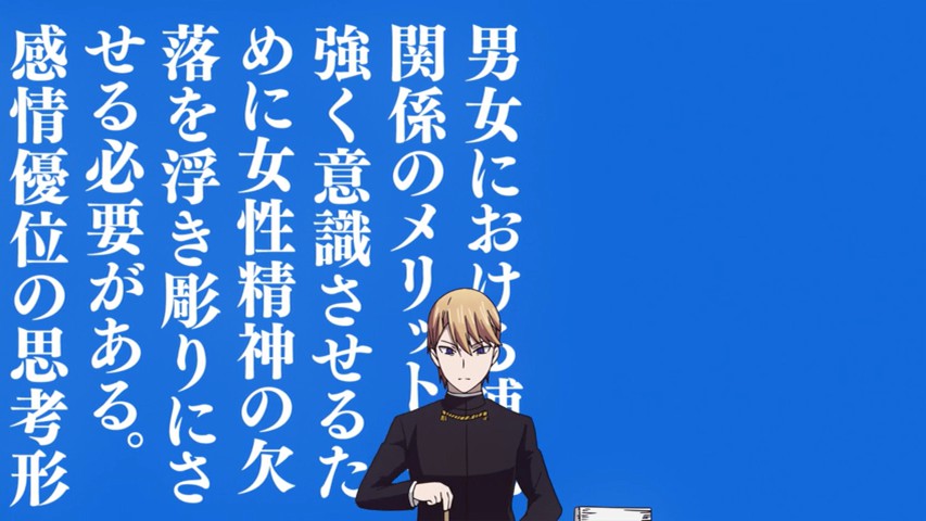 https://images.randomc.net/Kaguya%20sama/Kaguya-sama%20wa%20Kokurasetai%20-%20OP%20-%20Large%2003.jpgI love that OP song, it have this “james bond” feel to it, asa manga-reader i Lol’ed when the op shown chika as a joker card and “some awesome guy” as a ace card.