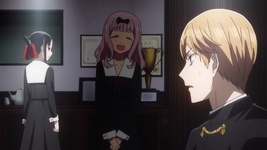 While this is good and I’m glad it was adapted, the manga is much better in my opinion. The internal dialogue is the most important part of the show, and like you said it’s a lot to take in while being shoved down your throat. It needs to be able to breath a little. I was waiting for the ‘charm’ that the manga has and it never really clicked for me. The nuanced expressions in the manga can’t easily be replicated in the anime.Also the VAs were a little weird to me. I always though Kaguya would have a little bit higher voice to show her innocence (not little girl high or anything) and the President sounds like a middle-aged man.That said I’m surely going to watch it all the way through. There is development beyond the main gag and it will be interesting to see how they handle it. There’s more than meets the eye here.