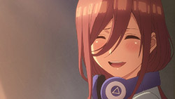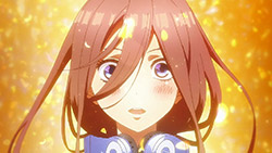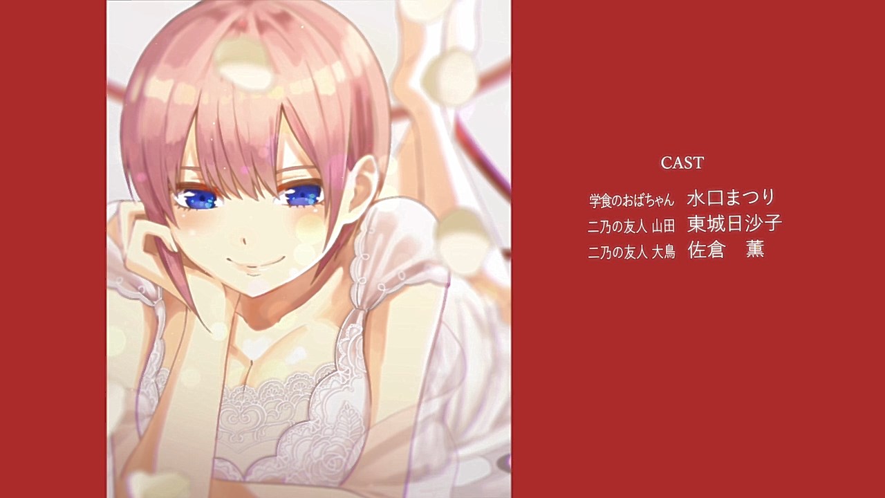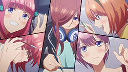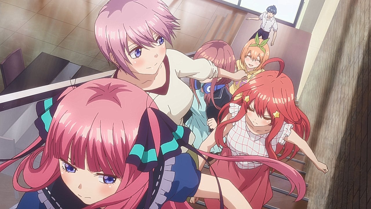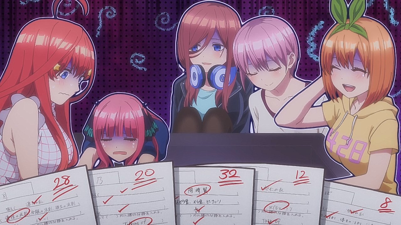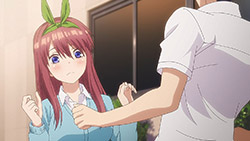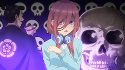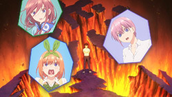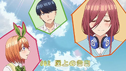 The second episode of Go-Toubun no Hanayome scratched an itch I didn’t realize was there with how Miku ended up being extremely cute. By showing Miku’s hidden obsession with Sengoku-era warlords, it not only gave her more knowledge to work with despite her and her sisters’ academic failings, but also gives her far more characterization as she tries to keep her repressed love a secret from her sisters.This episode’s main focus is on learning about what makes Miku tick. Even though she is often shy around others, it is the only way she was able to enjoy her hobby without the fear of being judged. Starting from the feelings she has for older, bearded generals from a historical app game, she then became obsessed with Sengoku warriors to the point of studying Japanese history. As a result, she’s able to answer every historical question she’s given despite failing in other subjects. Even though the Nakano’s siblings’ go-to response to Fuutarou’s tutoring is to run away as far as they can together, Miku showed the most creativity by putting on a bow to impersonate Yotsuba and point him in the wrong direction. It’s a funny moment, but it shows the hint of craftiness that Miku has in her problem-solving efforts. Another aspect of what make’s Miku’s point-of-view so special was being able to understand how important it is for her to find someone to talk with regarding her love for the Sengoku era. In the process of accepting Fuutarou’s tutoring offers, she’s also working towards an overall goal of being proud of what she knows, and trying not to see Sengoku-era history as a personal shame of hers. It was also impressive to have Miku see through Fuutarou and show him that there are still things that even he needs to learn. For being an astute person, Fuutarou’s knowledge on everything isn’t as encyclopedic as what Miku knows about the Sengoku era. This becomes a thorn in Fuutarou’s side because not only did his lack of knowledge in some references make Miku disinterested in learning under him, but most importantly, it was a wake-up call not to underestimate the Nakano sisters. To have been told he might not have all the answers rankled him so much that he used his studying habits to learn everything he needed to in order to match Miku. At the same time, his efforts would eventually drive him to do more to help these girls than to just hit their sweet spots or cater to their interests under the assumption that they’ll eat from the palm of his hand. Under that mentality, it only brought him to stumble around Miku. It’s honestly refreshing to see that Fuutarou isn’t completely perfect or stoic as he re-evaluates his approach and tries his best to make up for acting like he had all of the answers that Miku already knew. Additionally, knowing how gifted Miku is in her historical knowledge helped Fuutarou understand how the Nakano sisters are pieces to a bigger puzzle since each of them are masters of only one trade. I absolutely loved Miku, her quirks, and her growth as she decided to open up to tutoring, but the episode also gives us some extra tidbits on the other girls. Yotsuba continues to be such an amazing support system to Fuutarou as she is the only sister to eagerly ask for his advice on her poor exams. Additionally, she tries to make strides to help Miku get more accustomed to Fuutarou so she too can benefit from his tutoring, although some of this motivation is Yotsuba really wanting to know if Miku has a hidden crush. And speaking of that, Ichika has her humorous streak continue as well with how she tries to act as Fuutarou’s wingman to get some alone time with Miku and encourage Fuutarou to appreciate the idea that studying distracts them from being young and alive. It was also amusing to see how flustered Fuutarou got about the possibility of getting a love letter from Miku even after acting like love is a waste of time.It wouldn’t exactly be accurate to say that Go-Toubun no Hanayome is a guilty pleasure since it’s been doing a great job as a harem anime so far. However, it was hard not to be in high spirits after finding out how adorable and charming Miku turned out to be. I suppose that the nerdy moe appeal of Miku was too irresistible not to find endearing. It might be comfort food, but it’s just the right level of feel-good to make Go-Toubun no Hanayome an exciting series to continue following. I’m looking forward to seeing what the anime does to expand on Nino next time around.ED2 Sequence