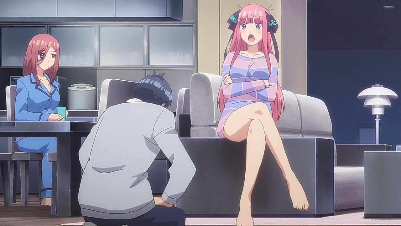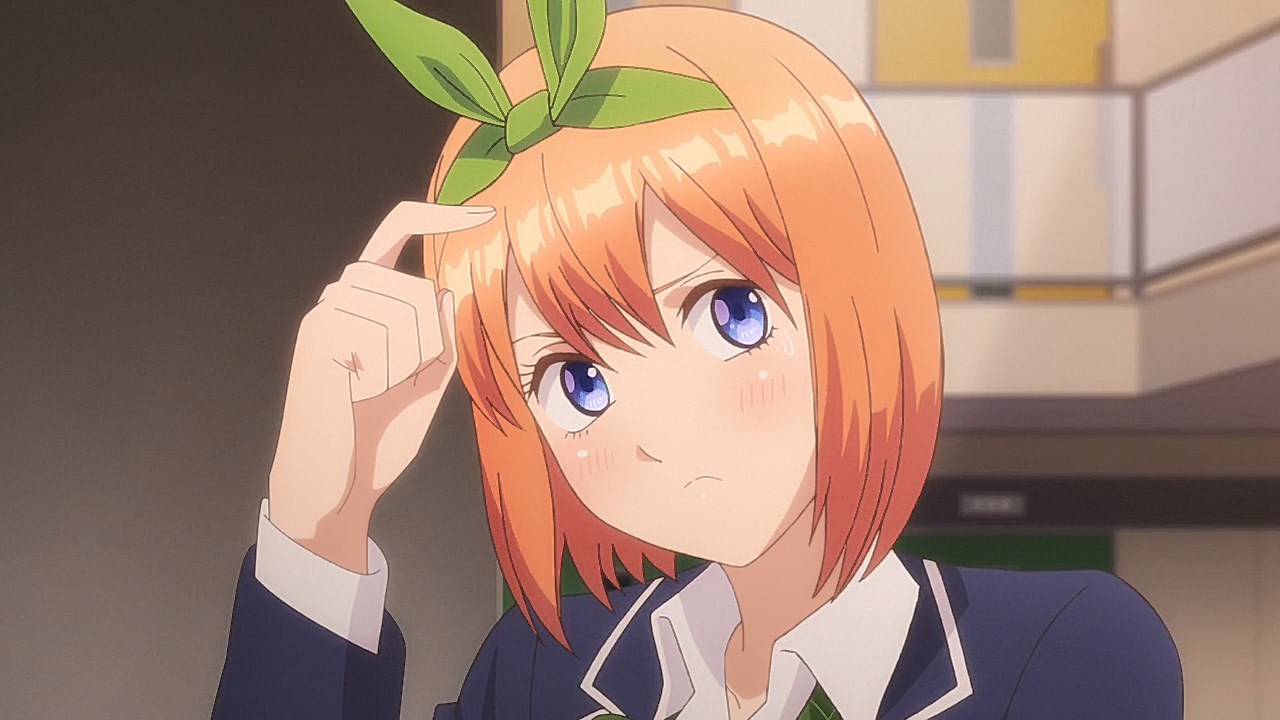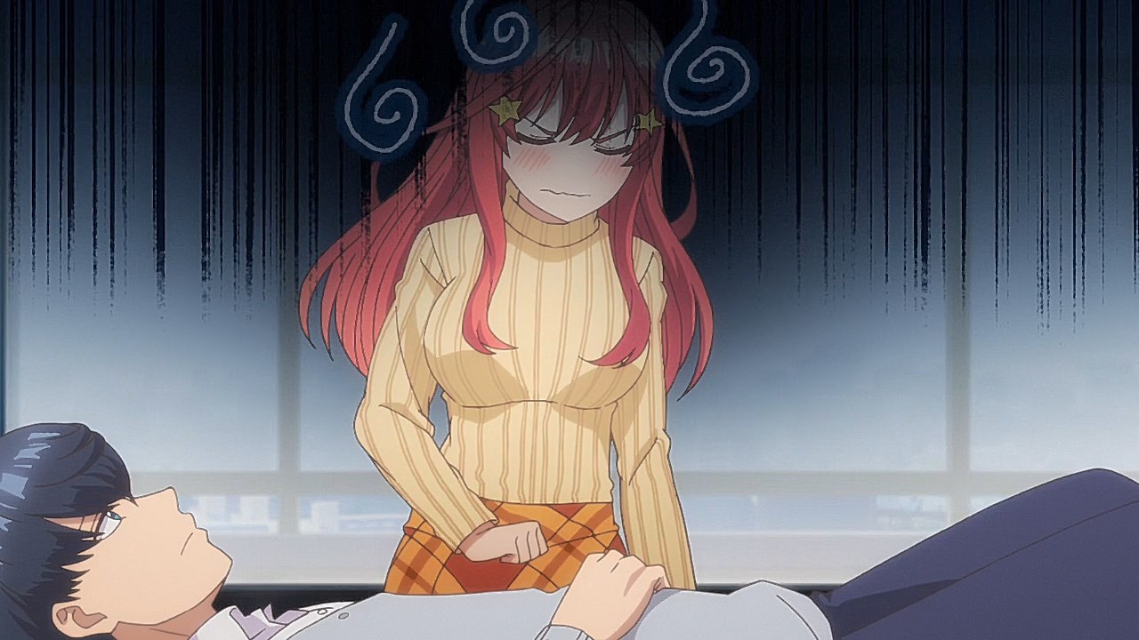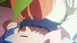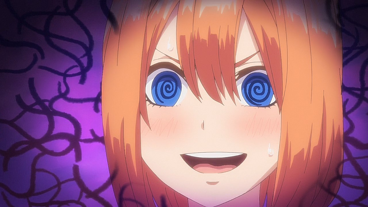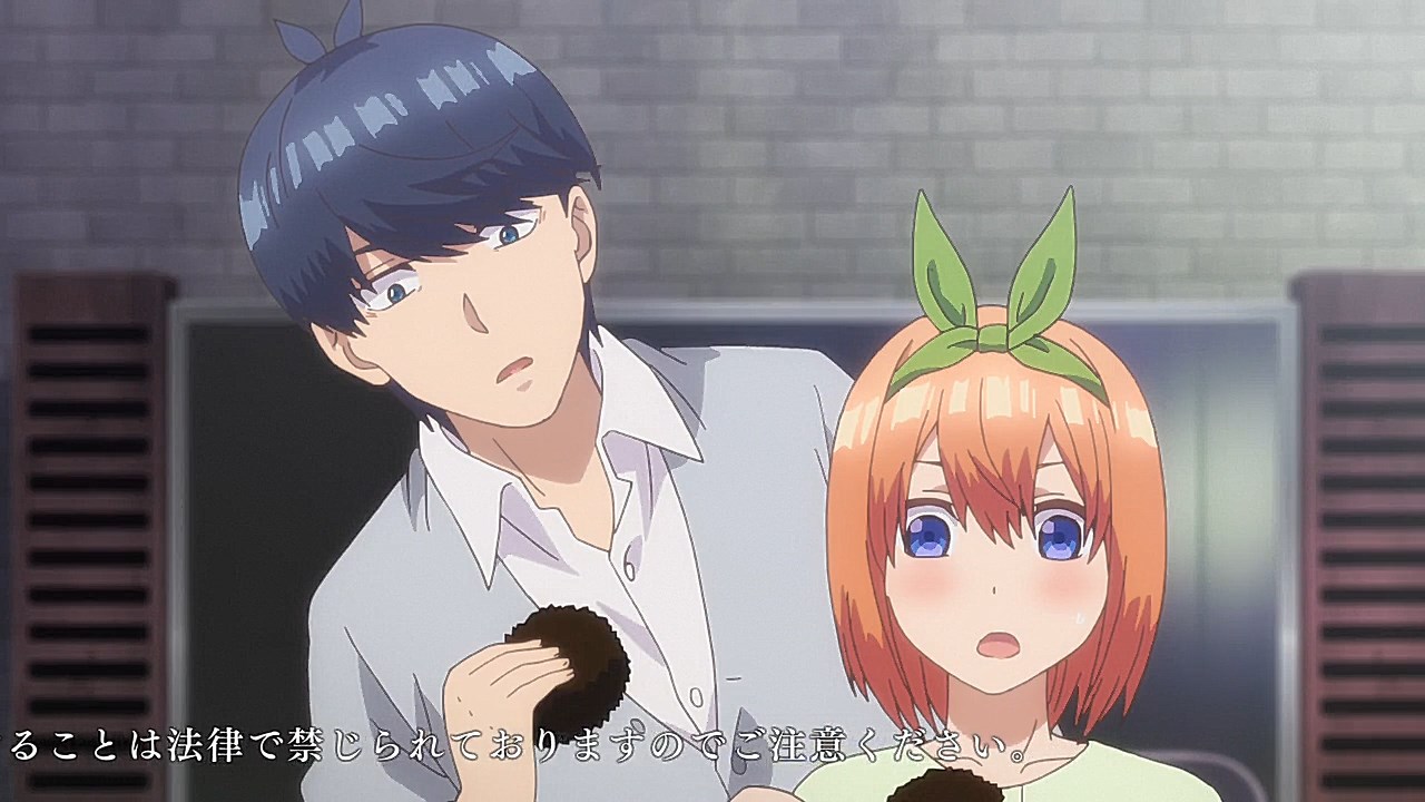 Following exam week, Fuutarou has his work cut out for him in Episode 08 as he figures out what his battle strategy should be from here. However, with explosive revelations coming left and right in this episode, Go-Toubun is looking to shift its focus on character relationships with many more allusions to both the idea of one of the sisters marrying him and one of the sisters knowing him in the past back when they were kids.In a change of pace, this episode gives some attention to Fuutarou, who is having a problem of his own when his student handbook goes missing in the Nakano’s condo. While it may just seem like your standard handbook, it has a photo of Fuutarou from back when he was a child, when he took on a blonder, rougher appearance. Fuutarou taking after his dad’s rebellious looks explains how his mindset was during his childhood, but also lets us understand that at some point between then and now, he made the resolve to change himself away from the delinquent look and take up a far more studious demeanor. Some of his mischevious behavior does come out in this episode when he aims to get revenge on the classmates who got him to be a part of the haunted house by scaring them. It does explain why he’s got a harder edge to him than other harem protagonists with how assertive he is, but applying his attitude towards getting the girls to study helps to flesh out Fuutarou’s character and show how he was able to channel his younger, rowdier self into his current, studious persona.Episode 08 also developed some of the Nakano sisters too as Yotsuba finally gets some time to herself with Fuutarou. So far, we’ve only gotten scenes where Yotsuba has cheered Fuutarou on from a distance while outright ignoring her studying. That changes in this episode with how she plays a pivotal role in trying to get on Fuutarou’s good side, starting with a failed attempt to get Nino and Itsuki to study by pretending that he’s gravely ill. For a positive change of pace, Yotsuba is also able to prioritize her studying to a larger degree as she puts basketball on-hold for the time being until she catches up with her education. For a spicer twist, we got a “confession” out of Yotsuba. It would definitely complicate matters if it was an earnest confession with Miku trying to get with him. But whether her insistence that she was kidding was a joke or not, it sure took Fuutarou aback. What is fascinating about Episode 08 are the implications it has towards the future. This episode was a chance for Nino to get back into the fold as Fuutarou had the chance to pierce her ears if it meant she wouldn’t look at his handbook. She was smitten by the older look Fuutarou had since she loves the bad boys, but with Fuutarou insisting that he was a relative, it put their particular development on-hold. He’s still keeping the door open considering that he was anticipating having her meet the guy in the picture someday. When she left the room, it’s revealed that part of the image was obscured specifically because the other side of the picture had a girl who is one of the Nakano sisters next to him. That brings in two mysteries for the series: “Who is the bride?” and “Which sister is the girl in the photo?” While there were other key moments in the episode such as Ichika being the first girl to ask for his email address (and threatening to send a picture of him sleeping on her lap if he didn’t gather the others), Miku making overbaked croquettes that Fuutarou ended up liking anyways, and Fuutarou cursing in English, this was an episode that ended on an explosive note that will eventually pave the way towards the series’ greatest mysteries being answered.Preview