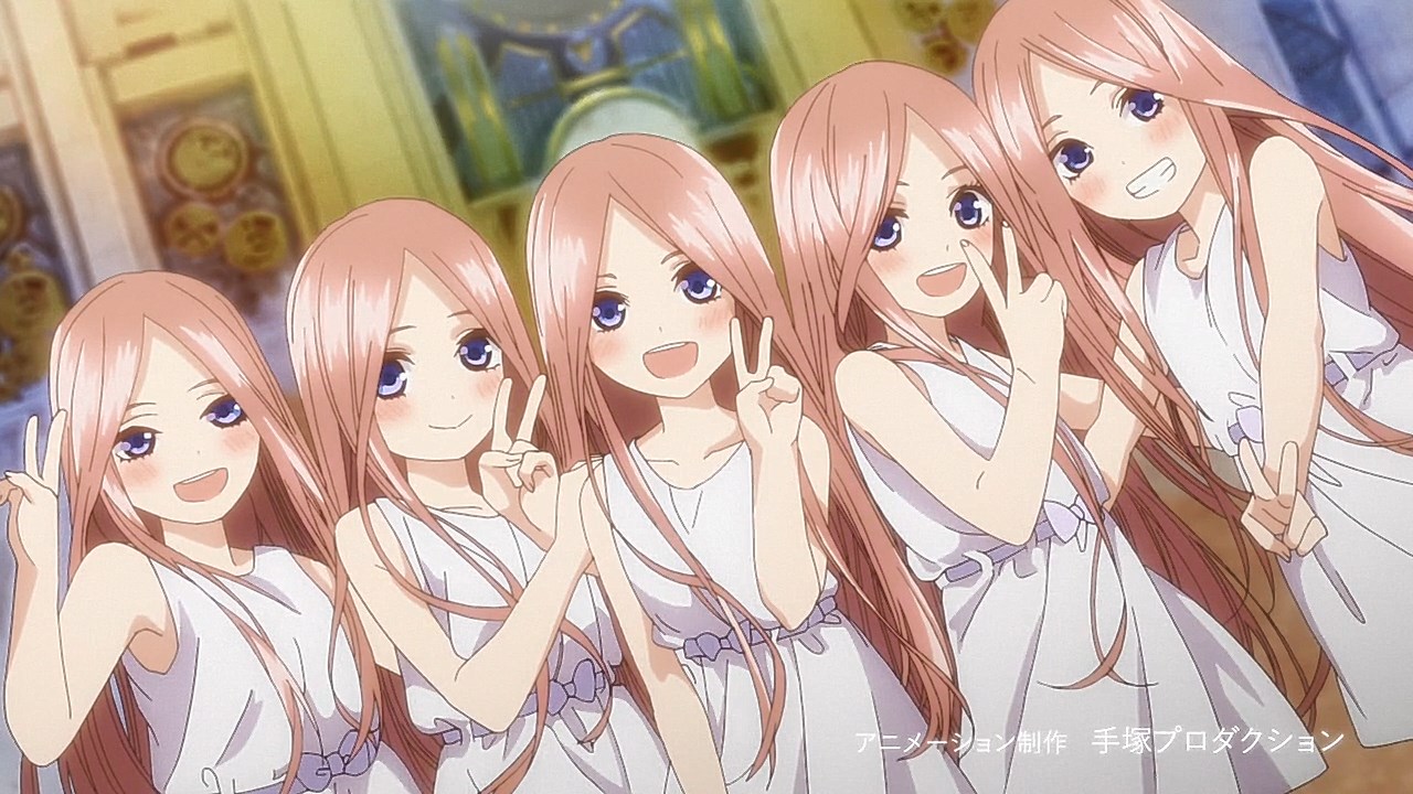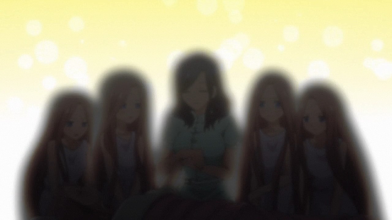 https://images.randomc.net/Go-Toubon%20no%20Hanayome/Go-Toubon%20no%20Hanayome%20-%2008%20-%2036.jpgI certainly hope he doesn’t end up with this girl. Would like the present situation to be the deciding factor instead of the past. Kinda doubt it’s Nino, since who would actually forget someone whose their type? Sadly I don’t ship Nino…https://images.randomc.net/Go-Toubon%20no%20Hanayome/Go-Toubon%20no%20Hanayome%20-%2008%20-%2035.jpgKinda hard to guess who’s who. I think 2nd from the left is Miku, while the right most one is Nino. Got a strange hunch that the left most one is Ichika. Even after this episode, I still can’t tell which one is Yotsuba, wouldn’t be surprised if any one of them was her.