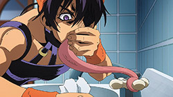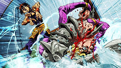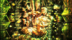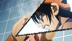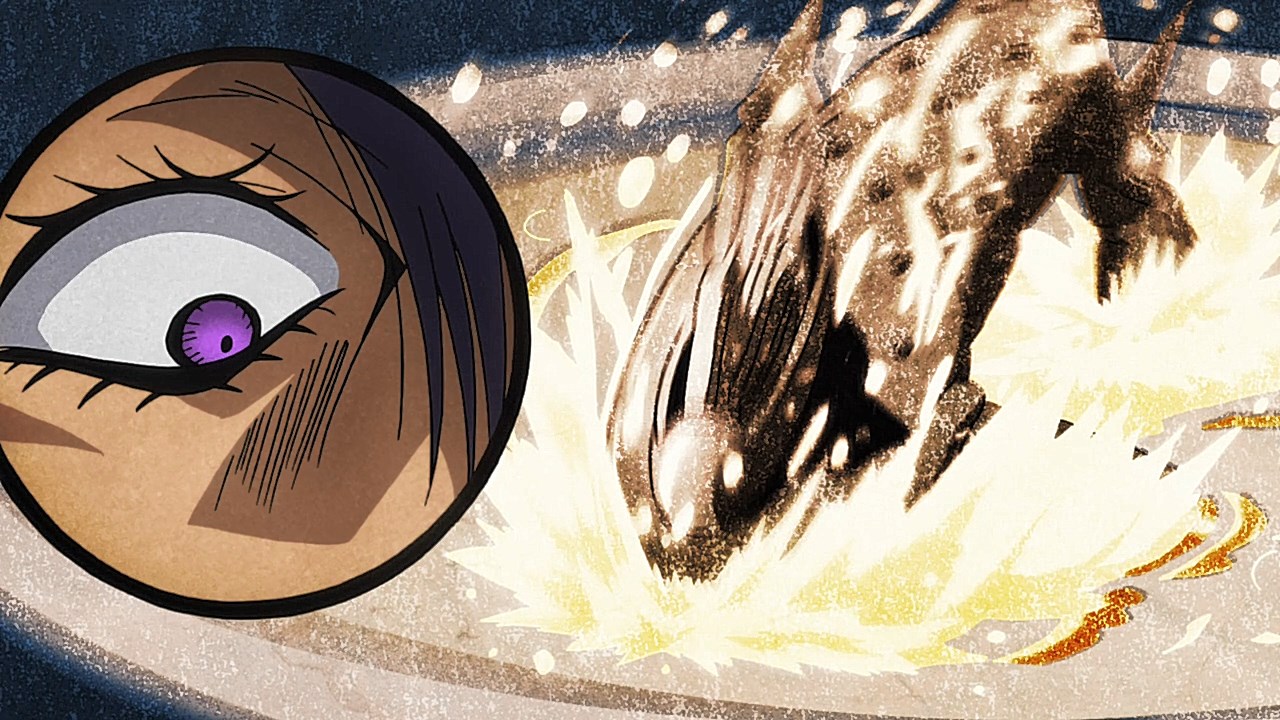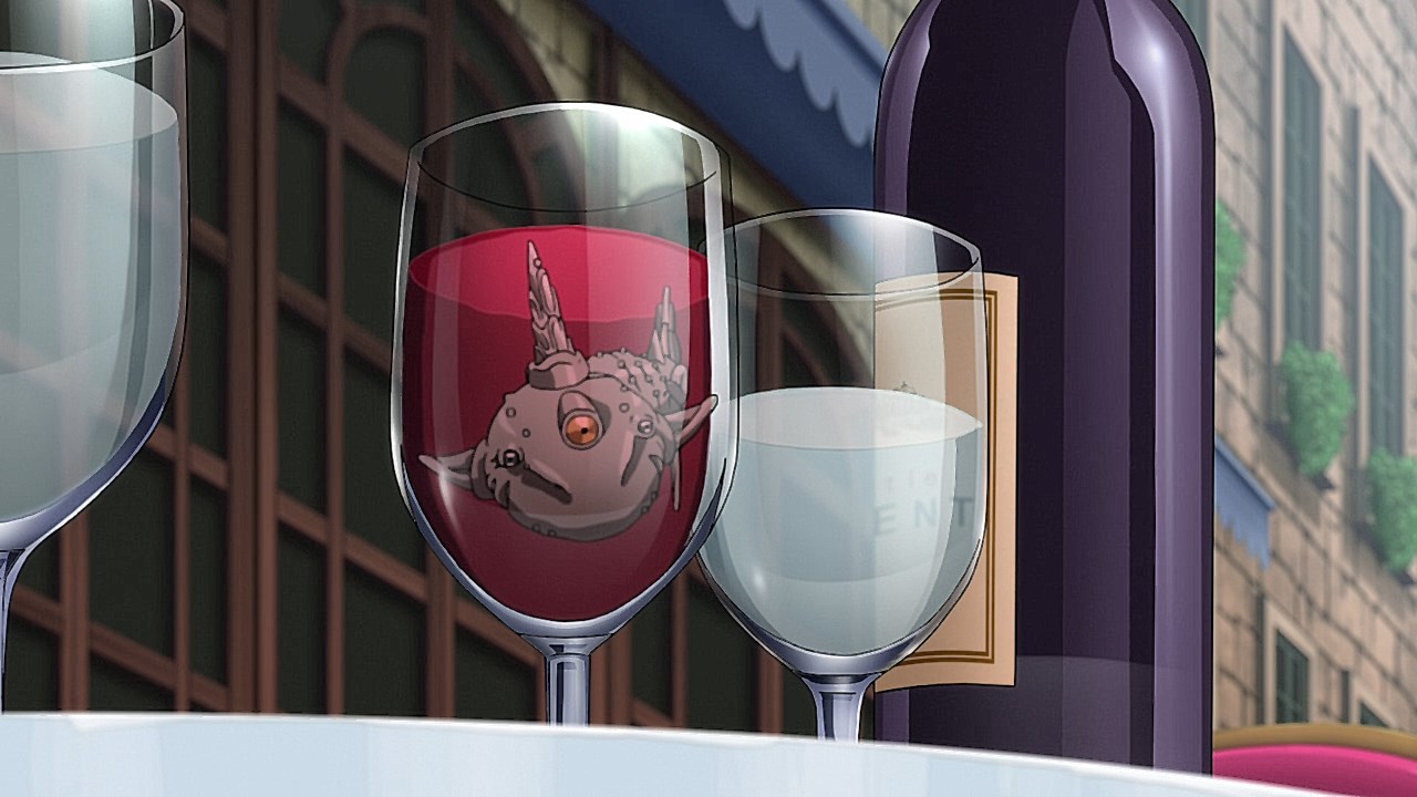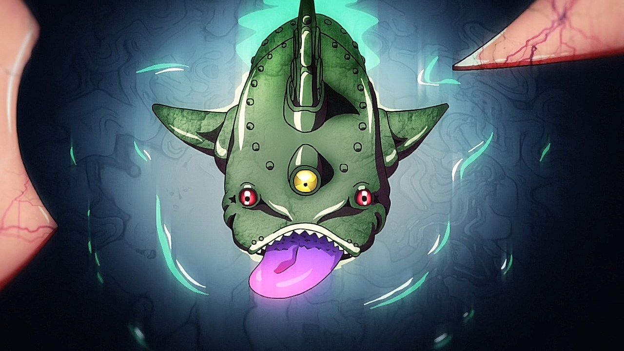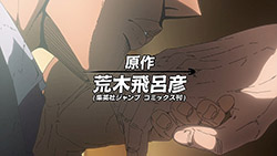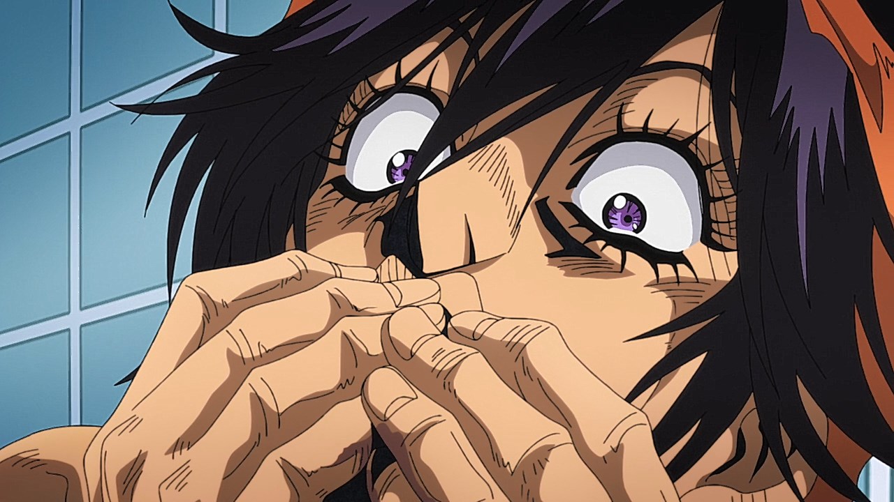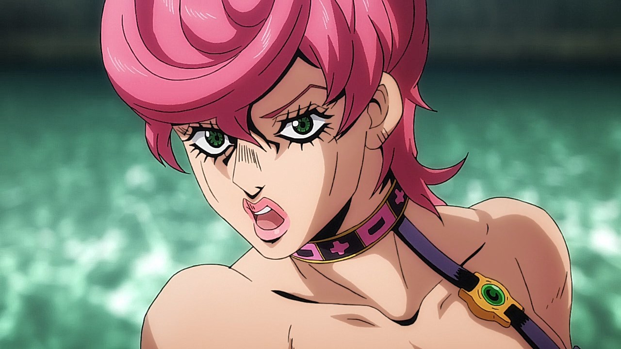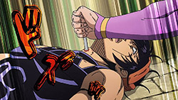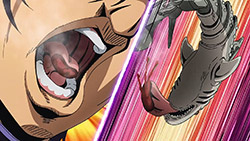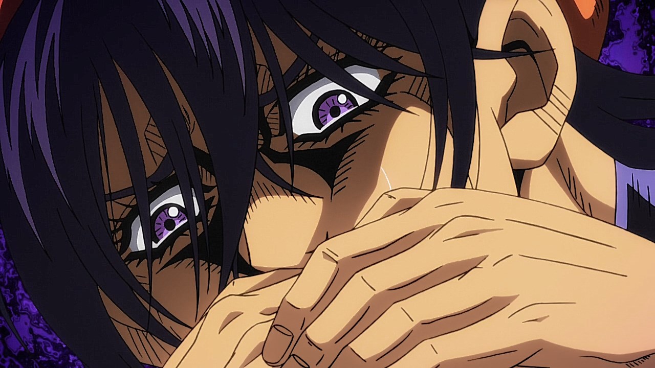 To get the most obvious out of the way first, this episode marks the grand debut of the new opening and ending themes. With the OP, they bring back Hasegawa Daisuke, the performer of Part IV’s “Great Days”, to perform the Part V-centric “Traitor’s Requiem”. At the moment, it doesn’t have the catchiness or bombast of Coda’s “Fighting Gold”, but makes up for it in the polished visuals of the OP. They did give away quite a few spoilery details, more than “Fighting Gold”, but as a manga reader, it was exciting to see what was being foreshadowed. The ending is much more interesting as they switched in another song from a Western artist. This time around it’s Enigma. Remember that Stand user from Part IV that creepily trapped Josuke’s mom in his Stand book only for Fungami Yuya to gladly turn himself into a piece of paper to turn the tables and trap him in his own book? This is where his Stand name comes from. But rather than choosing their bigger smash hits like “Return to Innocence” or “Sadeness”, they went with a deeper cut from 2000 called “Modern Crusaders”. Understandably, the title alone fits in by positioning Passione as the newer equivalent of the Stardust Crusaders from Part III. What I personally enjoyed about the two sequences, however, is how much they call back to prior fights. Whereas the OP skims the highlights of the first half’s fights, the ED has a stone pillar with a collection of Stands that are featured in Part V starting with Black Sabbath and ending with Gold Experience. It was nice to see them looking back at past fights, especially with so many of them in the rear view as Passione starts to take on the Boss’ own personnel. Despite the “quality” that permeated the deteriorating art of this episode, the content makes up greatly for these shortcomings. This sections fight is particularly fun because of how much chemistry that Tiziano and Squalo have with one another through both their personalities and abilities. So far, dual opponents have tended to be disjointed with how Pesci had to maneuver around Grateful Dead to try to lure out Passione without getting caught and how Prosciutto had to deal with Pesci’s erratic behavior in order to better utilize his Stand on the train. The big brother/mammoni relationship of Prosciutto and Pesci made it all the harder for them to work together without the former getting angry or the latter trying to lean on his aniki. With Tiziano and Squalo, however, their relationship is more symbiotic, starting with how comfortable they are with feeling up on each other as they formulate a plan to take on Passione. On top of their overall confidence in their relationship together, their confidence helps the two know exactly how their Stand abilities can complement each other. As a result, Squalo’s “Clash” synergizes comfortably and effectively with Tiziano’s “Talking Head” to trap Narancia into dooming his squad. As proof of their deep bond, Tiziano’s main strategy in the fight is to use Talking Head to manipulate Narancia into misleading Passione into a watery death trap where Clash can freely move about to strike as many of his targets as necessary. It’s one of those fascinating battles in JoJo where, because their current opponents have remote Stand abilities, our protagonists have to rely on their wits rather than their strength to win the battle. In Narancia’s Talking Head-induced trance, he has to find a way to communicate with his friends without leading any one of them to a shark-infested demise. And because Narancia isn’t the sharpest tool in the shed, his only means of making sure he can try to effectively stop his friends from heeding his misleading advice is through over-the-top physical actions such as peeing in front of everyone and cauterizing a wound with a burning handrail. It’s hard not to get excited about the battle when it encapsulates how much thorough planning and quick-wittedness goes into constructing such fights. Where only time would be able to tell how the dimmest member of Passione could find a way to out-maneuver two Stand users with such a strong connection that their abilities work in unison to create a highly-lethal combination. Where the plot goes with Trish as they plan to unearth the Boss’ identity at his hometown of Sardina will be neat to see unfold, but first, we’ll have to see what will happen now that Giorno is being attacked by Clash.ED3 Sequence