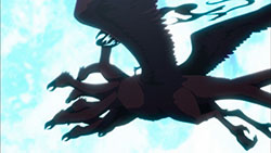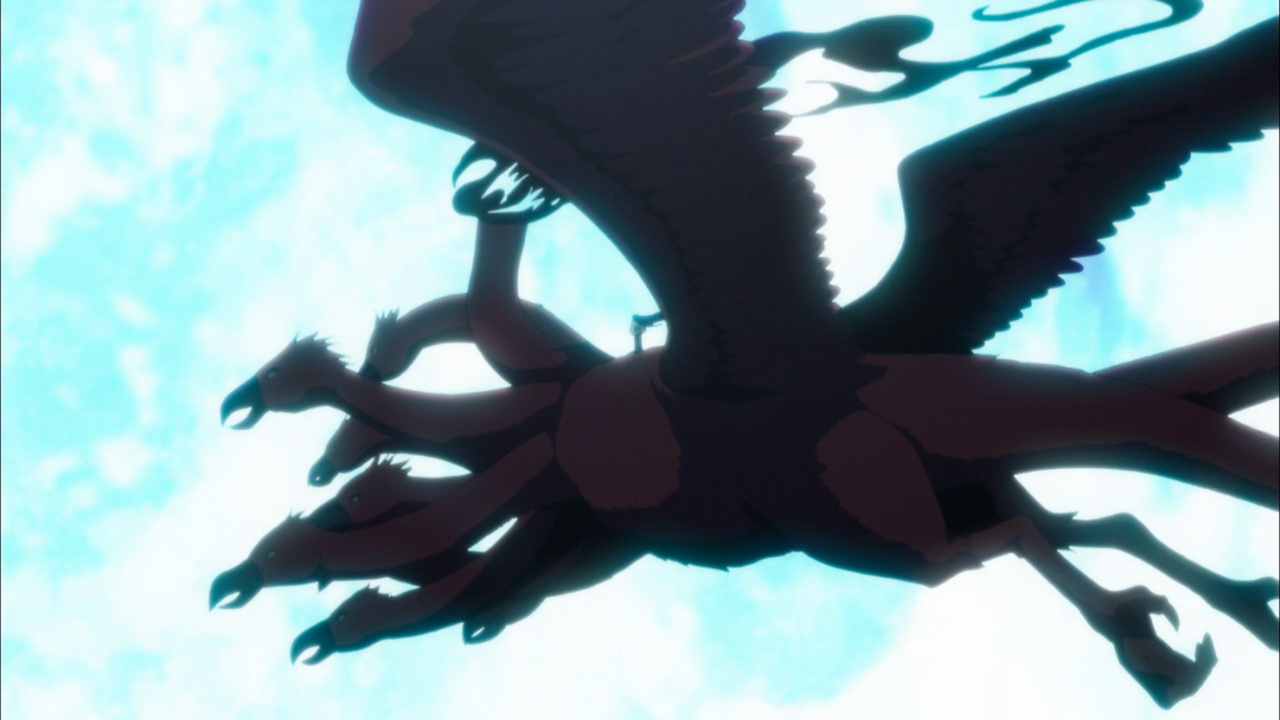 Events are moving fast, though, because there’s a new player on the scene who could very well be the main villain for this season, and he’s riding in on the back of a Chinese kisha, a many-headed bird with one neck that always weeps blood and a portent of disaster. Somebody sure does know how to make an entrance. And luckily for Arata, he gives the best the gifts, too!