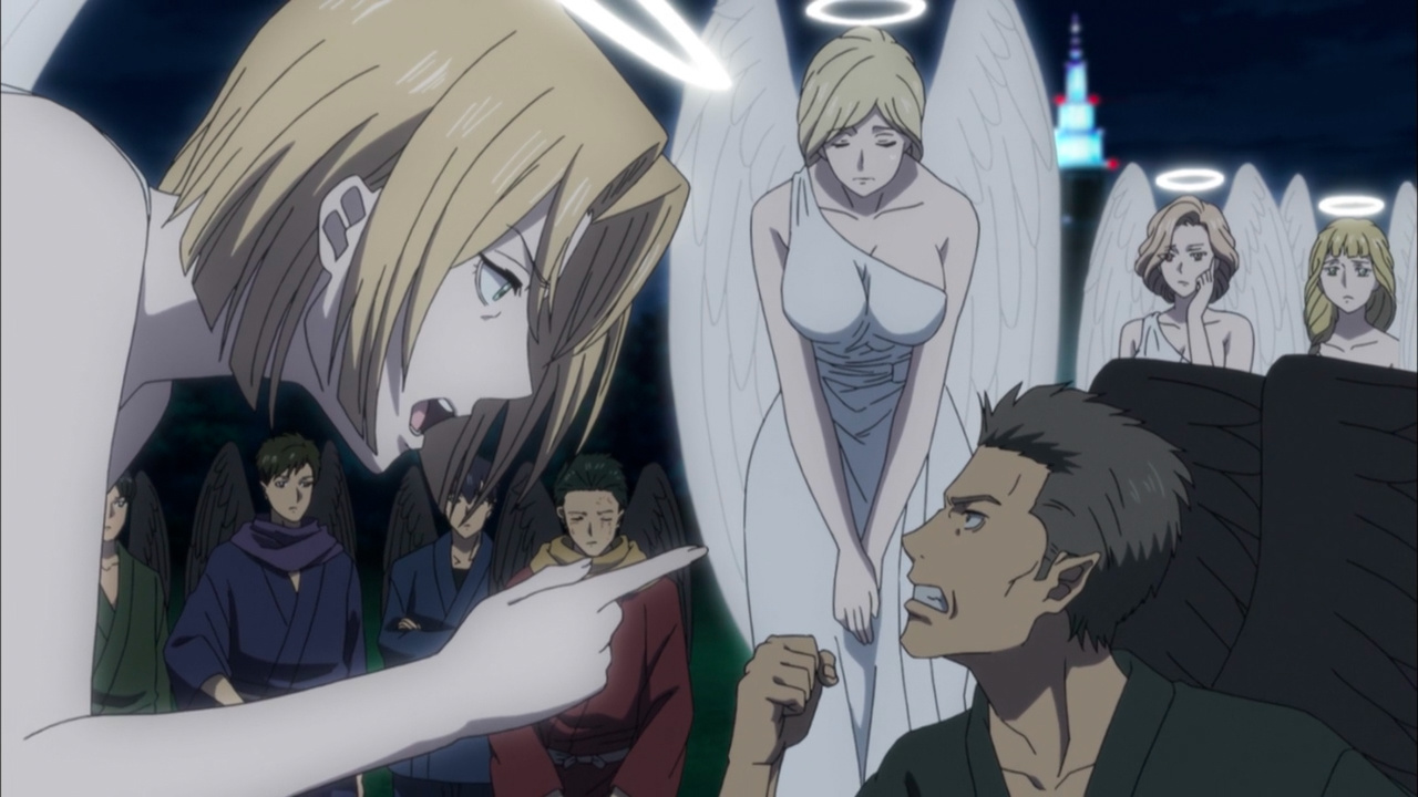 from local scruffle between Angels and Tengu into undead outbreak in one episode span…fast moving plot – maybe even a bit too fast…