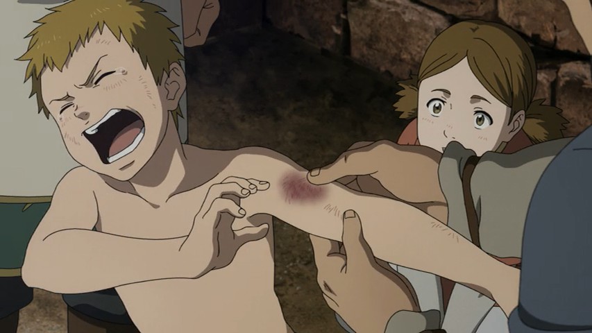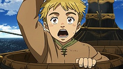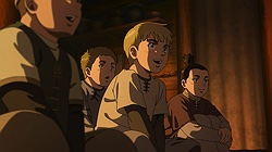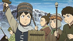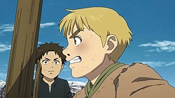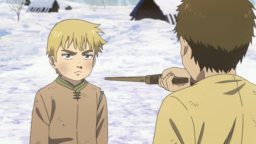 The kids remind me of Al and his friends from Mobile Suit Gundam 0080: War in the Pocket – thinking war is exciting and fun, imagining how awesome it would be to beat the Principality of Zeon and such, only for Al to learn how terrible war is the hard way by the end while his classmates still remain blissfully unaware.From the looks of it, Thorfinn will end up getting an even harsher baptism of fire by being more directly involved rather than helplessly watching from the sidelines like Al did.