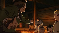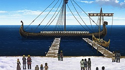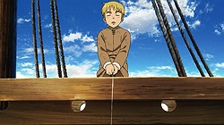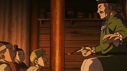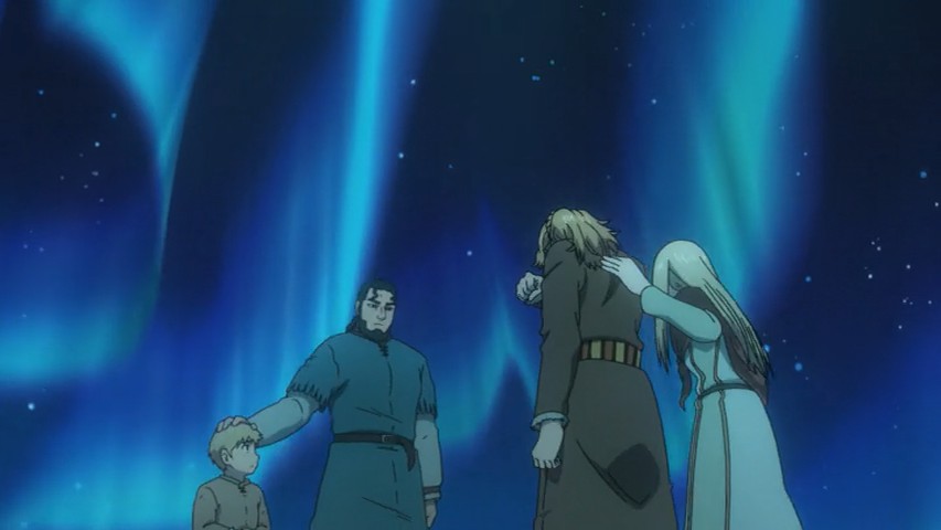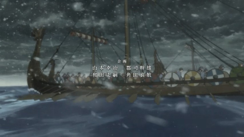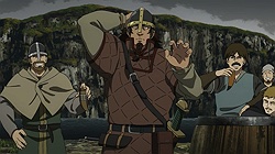 I have so much I want to say after this truly astounding premiere of Vinland Saga. But the first thing I have to say it that I have to face the reality of a triple-episode release on a work night – I would like to give this premiere the exhaustive analysis that it deserves, and normally for a triple episode I’d do a very long post. But life is life, and mine doesn’t have a pause button. It’ll still be a long one, but not as long as it really should be. The short answer is – wow.I think another topic that should briefly be touched on is the decision to release three episodes at once. I mean, if the intention was to get the audience hooked in, well – it damn well worked in my case. But I think that would have been almost as true with a single episode, and as much as I loved having a movie length serving of anime this stupendously good, I worry about having a three-week break right after the start of the series. I don’t think they’ll lose the audience, but a hiatus right after the launch strikes me as a legit concern.Setting that matter aside, in terms of content itself, this was – as I said – stupendously good. No question Vinland Saga was seriously hyped in my mind (and not just mine, given that it won the LiA preview poll and leads the Random Curiosity one), but this is that rare case of a hyped anime that blows the hype out of the water. Yes, it’s probably an unfair advantage to have three episodes to compare against shows that only had one, but this was as good a premiere as I’ve seen for a very long time. I haven’t read Yukimura Makoto’s manga and I suppose manga readers might find something to complain about (as incomprehensible as that seems to me) but from a new viewer perspective, this was a virtuoso performance.I’ll tackle the production side of things first. I was a bit worried that director Yabuta Shuuhei has done so much of his work in CGI, but he’s also helmed some excellent shows (like Inuyashiki). Those worries were unfounded – the direction is masterful here, and while there’s certainly some CGI (this is a military epic after all) it’s judiciously applied and surrounded by gorgeous hand-drawn animation and art design. I’d also single out Yamada Yutaka’s very cinematic mostly-piano soundtrack, which is among the best of the year. The cast is uniformly excellent, and overall Vinland Saga just looks and sounds like a first-class affair.None of that would matter (well, it would matter, but not nearly as much) if the story weren’t up on the same level. But wow, the writing here is pretty amazeballs. A beautifully set up historical premise, a layered and sophisticated story with both scope and intimacy, and a cast of fascinating and well-defined (with alarming speed) characters. Vinland Saga is one of those series where even though the story is clearly a big one with many details as yet unrevealed, you feel as if you know what’s happening right from the start. You get a sense of who these people are and why, and an absorptive feeling of the world in which they live. This is some very eloquent and intelligent writing, to say the least.We tend to hear “Vikings” and just lump them all in one big group of hairy, bearded Norsemen raping and pillaging their way across Northern Europe. I knew there was more to the story than that, but Vinland really does let us in on the multiple layers involved. Norway under the cruel tyrant King Harald (850-932), Iceland and Greenland peopled by those who fled their home rather than live under his tyranny, Denmark in perpetual war with the English. And looming far across the sea, “Vinland” – the American continent which yes, Leif Erickson did “discover” five centuries before Columbus and Cabot.There are characters too numerous to mention given my time constraints who already make a big impression in this premiere, but the main character is young Thorfinn (Ishigami Shizuka), the 6-year old son of Thors (Matsuda Kenichirou). Thors is the de facto head of the remote village in Iceland where most of the premiere is set, and in truth, at this point in the story he’s the protagonist. And what a memorable one he is, too – a complex and troubled man with a dark past which has followed him to this distant place. You could sell me on Thors being the main character of an entire series and I’ll be ecstatic at the prospect, but it’s clear that Vinland Saga is destined to be Thorfinn’s saga (and he’s great too, so no complaints from me).Another crucial character here is the aforementioned Leif Erickson (Ueda Youji). As we meet him he’s already an old man by the standards of the time, viewed with affection but a little condescension by the village brats who half believe his stories of the new world are fairy tales. Leif comes across here as a man whose time has passed, yet remains formidable – an explorer at heart in a society of warriors. This is a theme we see repeating itself already, as Thors is likewise a misfit – he hates war and slavery with equal measure, though the youngsters (not least his own son) have a romanticized view of war Thors knows is a cruel lie. Thors’ wife Helga (Takahashi Ao) is quiet and frail but nevertheless strong, and teenage daughter Ylva (Nabatame Hitomi) is already a hard and tough young woman with a crowd of potential suitors.There are so many wonderful moments in these three episodes that I wish I could talk about them all in detail. The sequence with the runaway slave who Thors briefly saves and buys from his cruel master at the huge price of eight ewes – despite knowing the man was dying – is heartbreaking and incredibly revealing about Thors. But the meat of the story here is Thors’ past, which finally finds him after 15 years of peace. He was a captain of the Jomsvikings – a powerful viking mercenary army of the time legendary for their prowess in battle. He grew to hate war (starting with the birth of his daughter) and seized the opportunit