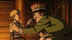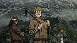 I’m surprised Zaidan didn’t mentionThorkell the Tall’s appearance in episode 1’s flashback. There is no picture of him in this post, but for those who watched, Thorkell is the guy who wakes Thors up from his daydream in the opening scene. For anime-only watchers, keep an eye out for Thorkell; he never fails to hype up a situation. You can read his wiki page to find out why.