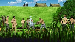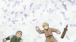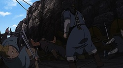 We end on a cliffhanger, figuratively and literally. The rag tag Icelandic entourage has been waylaid by a group of experienced and ruthless mercenaries. Can Thors singlehandedly prevail over Askeladd and his band of merry men? To be honest, I expected the first three episodes to just about cover the events just past this point. But I suppose this three week wait makes it all the more excruciating for anime only watchers, while manga readers know weve hit the highest point just before a rollercoaster is about to plunge. What can I say? This adaptation has managed to deliver in such a way that I suppose Berserk is crying over there in the corner, at the stark difference and unfairness in their respective treatments. But hey, I most certainly won’t be complaining since they haven’t bungled it up and I’m extremely excited to see how the rest of this adaptation will play out. Though the three week wait for Episode 4 won’t be easy at all. As always, thanks for reading this post. Hopefully me and Enzo havent overdone it here and if you have any suggestions or feedback about the format, let it be known in the comment section below.ED Sequence