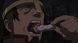 After the lukewarm start to HenSuki and the stumbling first episode of Arifureta…“Delicious. Finally, some good f**king food.”– Interesting choice to debut Studio Wit’s production logo/vanity plate in this series, though I feel a Bszoku vibe from it with all those motorcyclists. I’m guessing the final season of Attack on Titan in 2020 will also have the production logo at the start as well.- As much as I enjoyed Angolmois: Genkou Kassenki, the first three episodes of Vinland Saga managed to top even that. And if the manga readers’ impressions are any indication, the anime watchers will be in for a treat. On the downside, if Ad Astra: Scipio to Hannibal does get an anime adaptation, it will have a tough act to follow in the wake of Vinland Saga.- On a different note…about the Vikings’ current war with England, does that take place before the setting of Thrones of Britannia?“You could sell me on Thors being the main character of an entire series and Ill be ecstatic at the prospect, but its clear that Vinland Saga is destined to be Thorfinns saga (and hes great too, so no complaints from me).” – EnzoHell, a prequel manga chronicling Thors’ exploits as a Jomsviking would be an interesting and engaging read.Anyway, Vinland Saga‘s first three episodes definitely didn’t disappoint. And with Attack on Titan‘s final season on the horizon in 2020, Studio Wit picking up Vinland Saga was a pro move. The three-week wait will be a killer, sure, but I won’t mind as long as it’s done right.