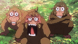 I’m getting the impression that the plot armour is half the point of the show. I’m also teetering on dropping this. The first half was really tedious with the endless and pretentious specificity of precisely how things were going to go and then it dragged on with much wailing and moaning and repetition. I had to mute it until the monkeys came out. Without the monkeys (of the non-shiny variety) I would have kept the mute on. The second half wasn’t awful but I could have done without it. I didn’t learn anything and it wasn’t as interesting as Senku’s first long flashback (which is why they needed monkeys for this one).