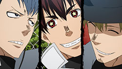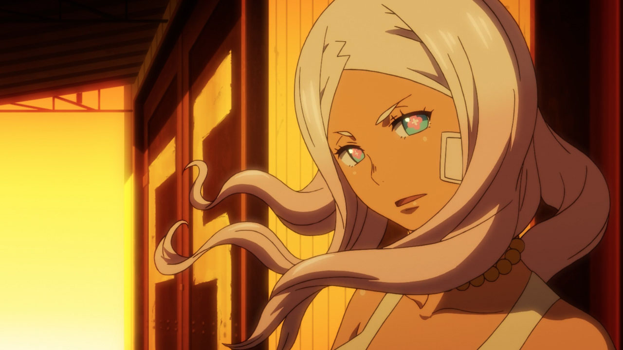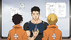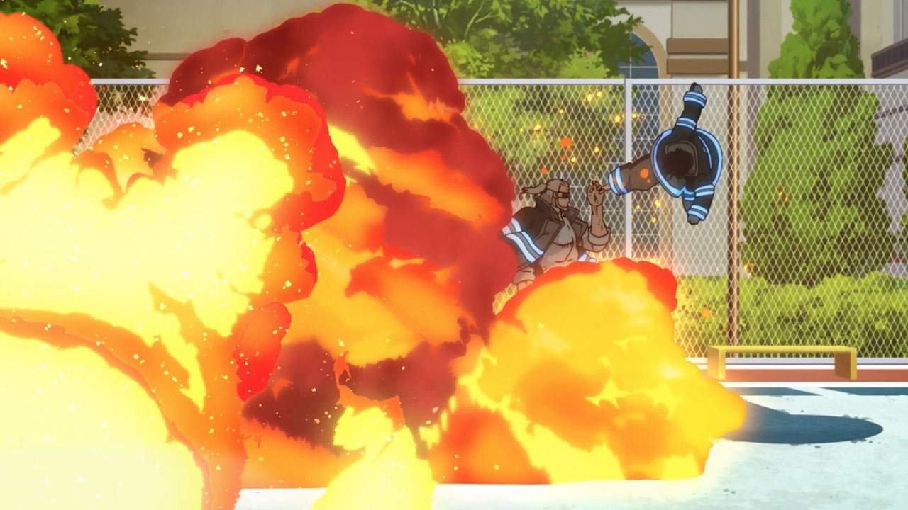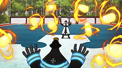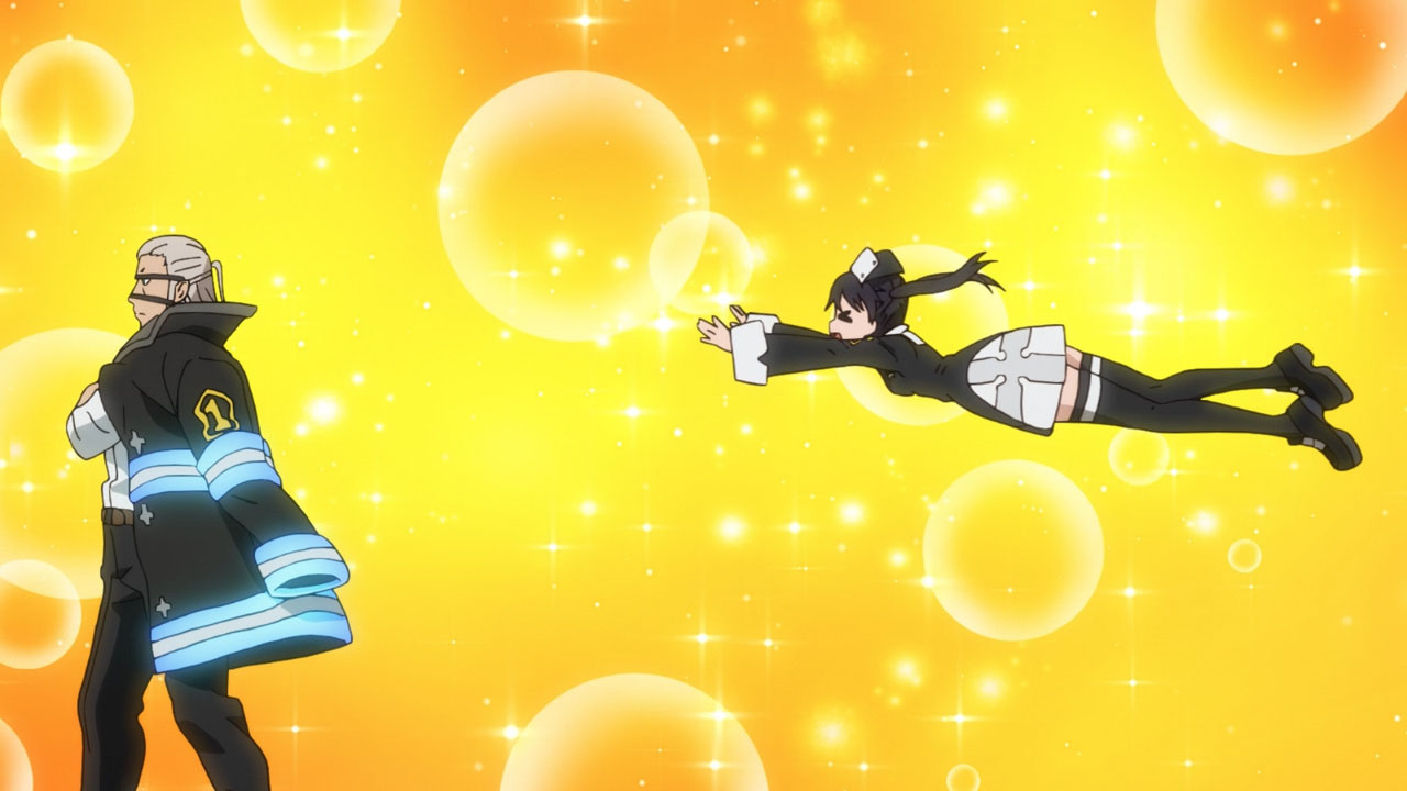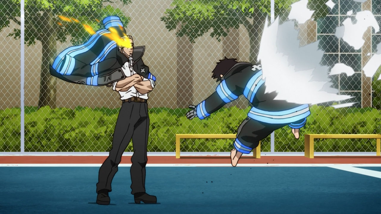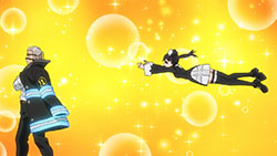 Moving on, I personally feel the series should tone down the fan service in regards to the female characters. Are we going to get a shower scene every time a new chick appears in the story? The first half of the episode is dialogue heavy and I actually realized something. It’s lacking depth and meaning. The only person’s story I like is Hibana’s. Shinra’s backstory is pretty generic for a main character and other characters and their personalities are only grazed upon. There’s so much comedic relief it’s difficult to understand what role they play in the larger scheme of things. I will, however, mention that at the beginning of each episode I anxiously await the action scenes. They’re well animated and really entertaining!