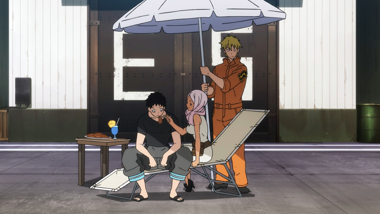 This is kind of an odd show for me. While it does have fanservice, it isn’t actually good fanservice (although to be fair, some of the Iris artwork in prior episodes has been appealing). That the characters are so undeveloped doesn’t help matters either.They also seem to be running out of character designs. These three look like clones to me: https://images.randomc.net/Enen%20no%20Shouboutai/Enen%20no%20Shouboutai%20-%2007%20-%20Large%2032.jpgOtherwise, the first sparring match sucked the life out of the episode for me. It lasted forever, wasn’t exciting to watch, didn’t develop any characters, didn’t shed any light on the show’s villainy, and it took away half an episode of opportunity to develop any of the ‘main’ characters (who desperately need it). And this came after the have a weird barbecue and watch the sun set over the ocean scene.Right now, I’d say that the show has the potential to be entertaining but isn’t achieving it very often.