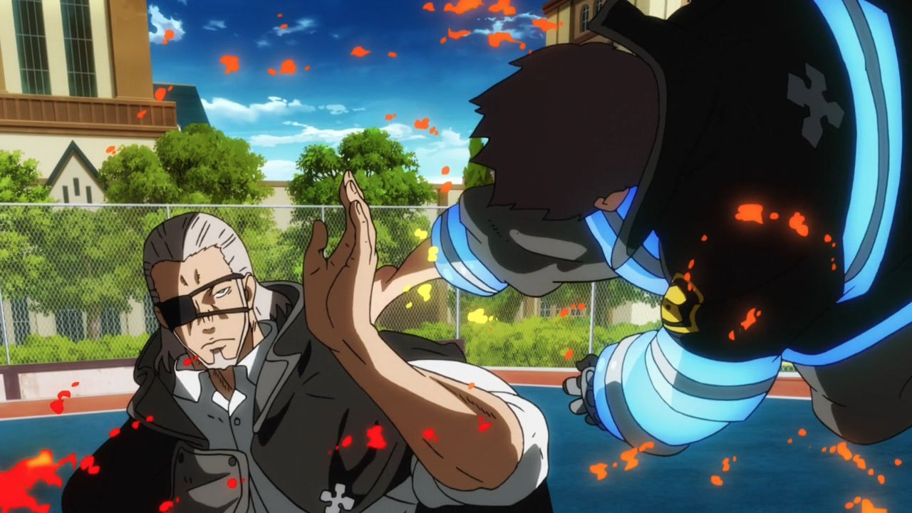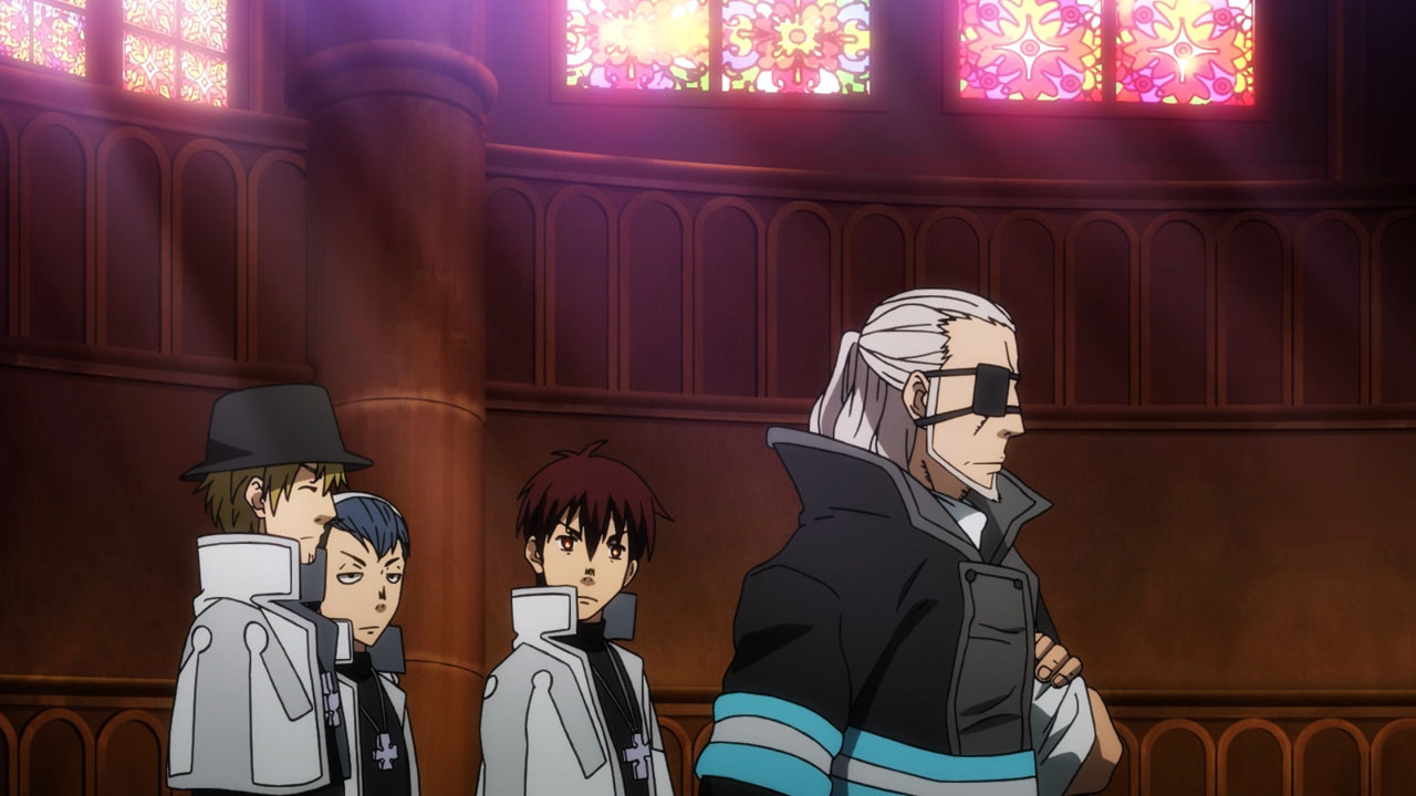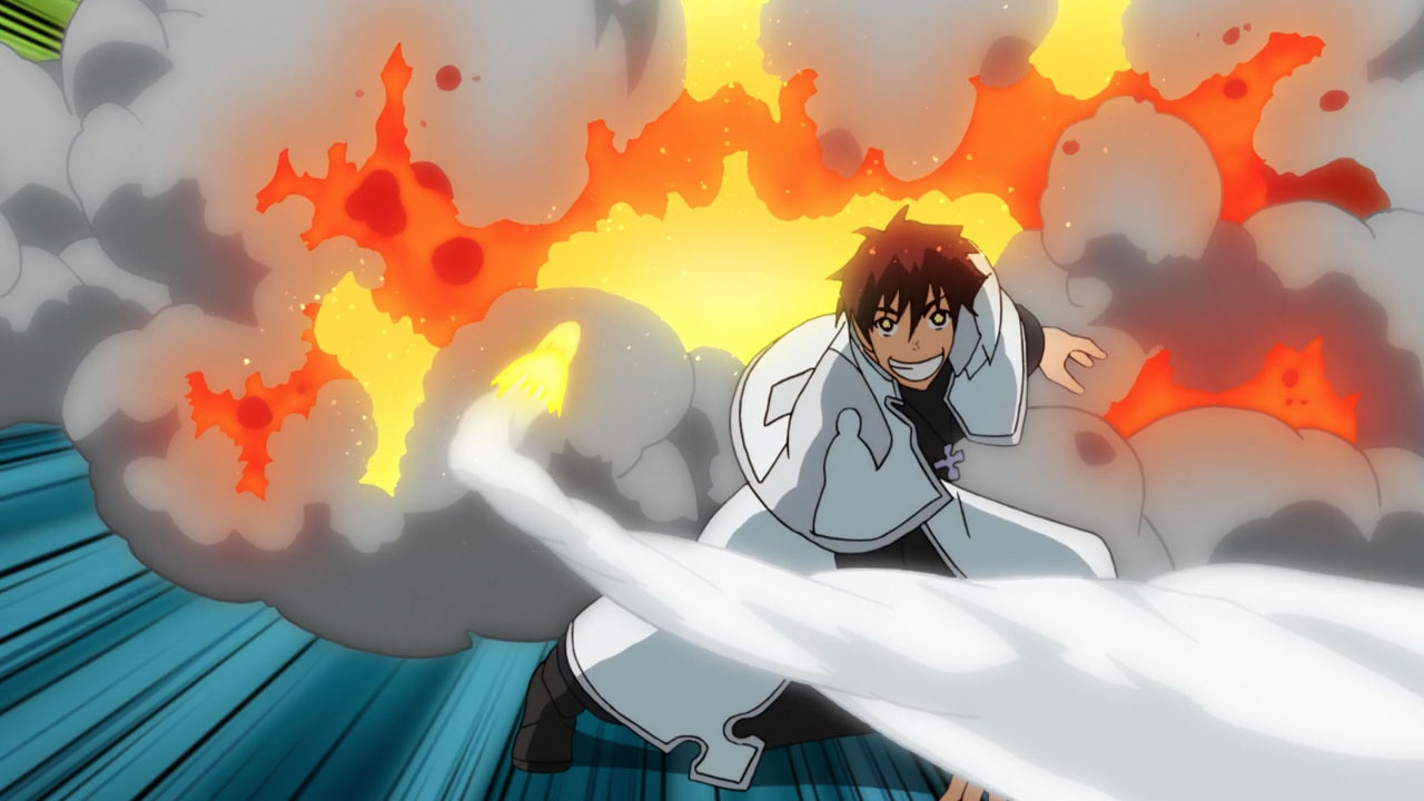 As for members of the 1st, they might have well walked a catwalk and told us about their powers. This episode acted as a very evident introduction to a wide range of characters and the concept of ‘Lieutenant Priests.’ The new roaster of characters include Huo Yan Li (Hino Satoshi), Rekka Hoshimiya (Seki Tomokazu), Karim Flam (Okitsu Kazuyuki), and Takeru Noto (Konishi Katsuyuki) who each have distinct abilities, either as third-generation or second-generation pyrokinetics. Karim’s ice power definitely threw me off but it was impressive nonetheless. Using sound to turn heat into ice? That sure is some complicated science! The most impressive and maybe most overpowering ability, however, is Captain Burns’s.