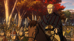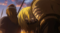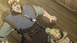 https://images.randomc.net/Vinland%20Saga/Vinland%20Saga%20-%2009%20-%20Large%2009.jpghttps://images.randomc.net/Vinland%20Saga/Vinland%20Saga%20-%2009%20-%20Large%2012.jpgI can sense Akio Ohtsuka is having a blast voicing Thorkell the Tall.https://images.randomc.net/Vinland%20Saga/Vinland%20Saga%20-%2009%20-%20Large%2030.jpgAlso, Thorkell getting stabbed in the hand and losing two fingers during his fight with Thorfinn? For him, it’s just a flesh wound.Definitely enjoyed the depiction of the Battle of London Bridge, though I can’t help but feel a tinge of sadness when Thorfinn declared to Thorkell that he was the son of Thors–especially Thorkell’s realization. (“That Thors?!”)Maybe I’m reading a little too much into the scene, but perhaps Thorkell felt joy about hearing that Thors was still alive after they parted ways and managed to raise a family. If there’s any moment where Thorkell realizes there is more to life than battle, that would probably be it.But I guess Thorkell is already dead set on his path. And he still doesn’t know about Thors’ demise.Moving forward, I wonder if Thorfinn and Thorkell will meet again? (Despite being aware of the “foregone conclusion” nature of the history this show was based on. *Mandatory spoiler tag reminder here*)