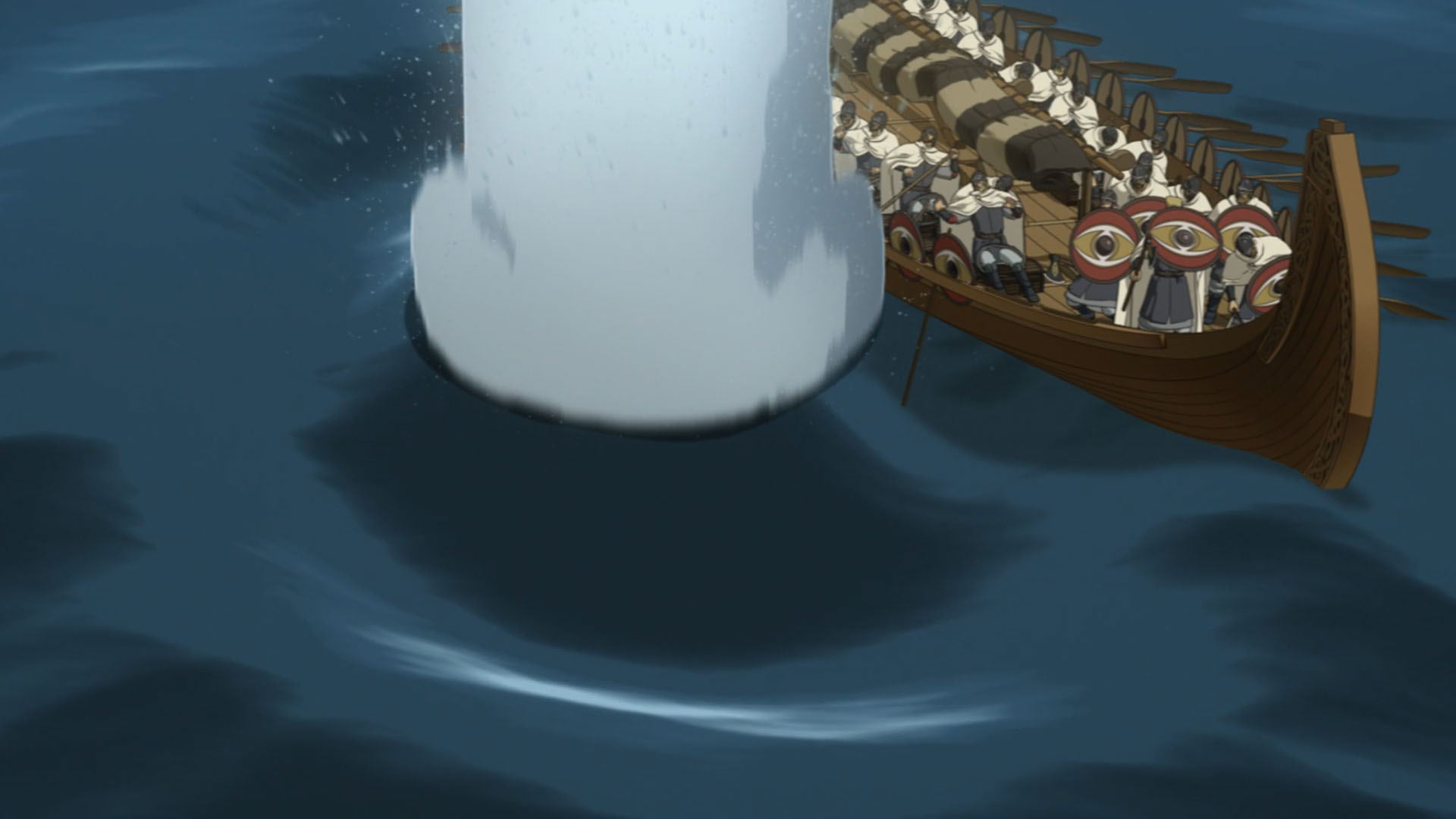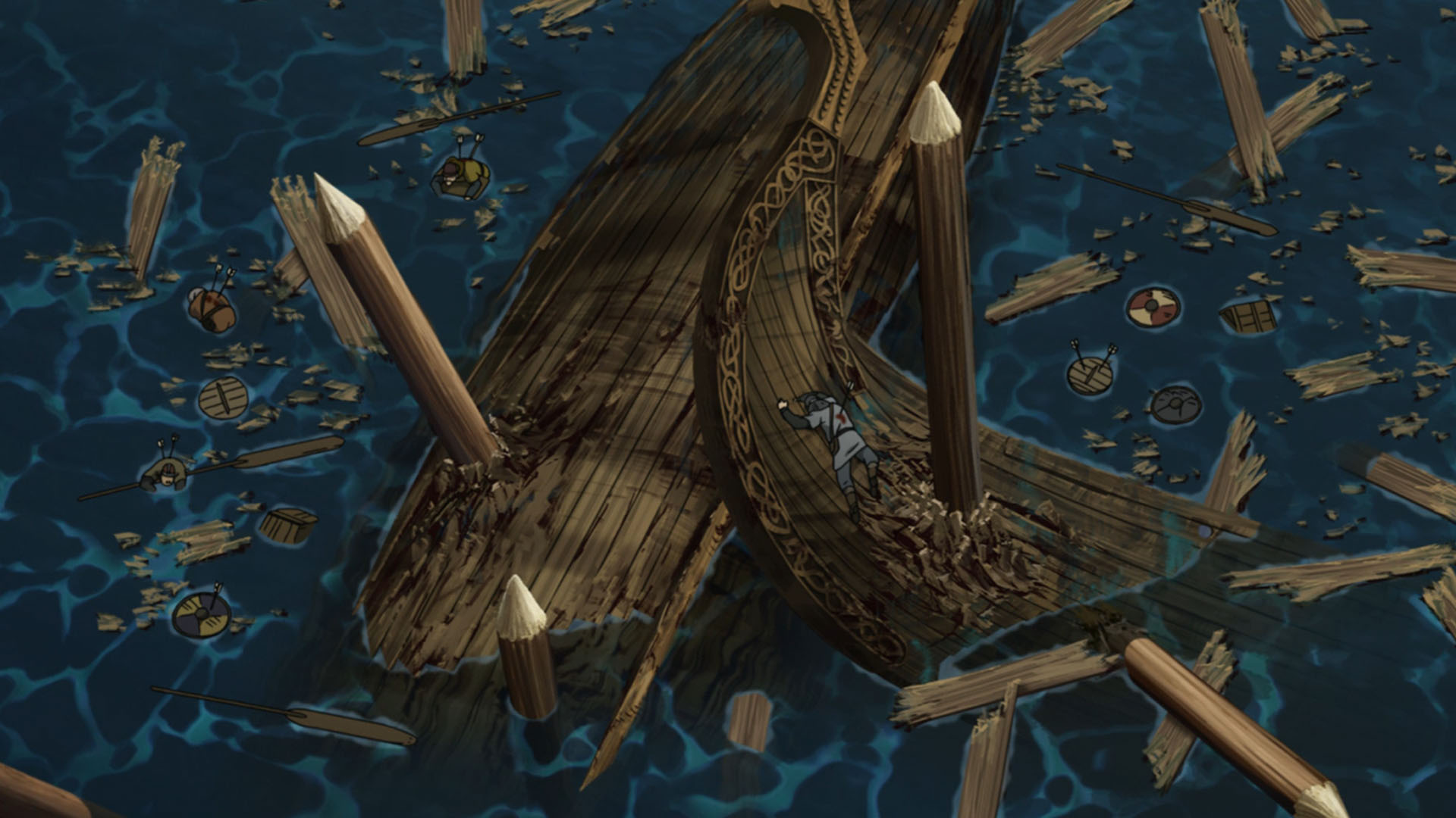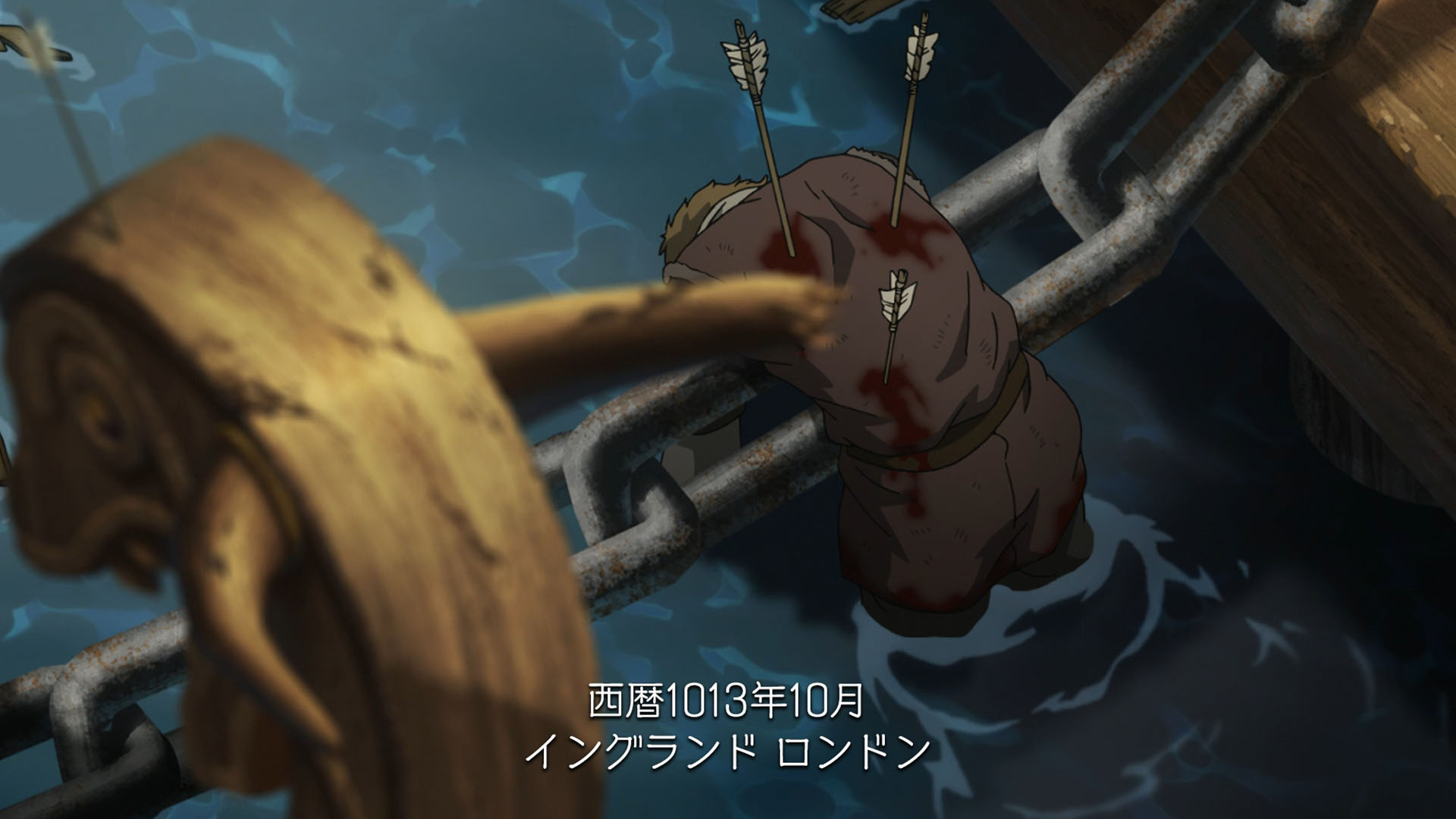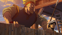 This was an interesting week on Vinland Saga. For the most part it was another full-on battle episode, and a corker at that – not nearly so silly and a lot grittier than the one set in France (even if one of the characters’ abilities stretched credulity a good bit). But it says something about the nature of this series that an ep can be all tempest and rage for its entire length, and have it all be overshadowed by a single line of dialogue at the very end. Both about the ability of the series to tell a story, and about its goals for that story.Things pick up more or less where they left off last week, with the Danish fleet approaching London Bridge. There’s a famous nursery rhyme based on the “Battle of London Bridge” (if I said which one it’d be a spoiler) so while less famous than the other “bridge” battle that would follow a half-century later, this was an important event in English history. For the purposes of Vinland Saga, however, it’s most important because (even though we met him briefly in the premiere) it’s the formal introduction of Thorkell the Tall into the story.Thorkell is a unique individual to be sure, and in fact based loosely on a real person. Here he’s a former Jomsviking (as he was in real life) and comrade of Thors, and perhaps the only man stronger in battle. Unlike Thors the Troll however, Thorkell seems never to have lost his lust for battle. Bjorn speculates that once Floki offers him double what the English are paying him (which he only does after trying to win him over the cheap way, by playing on his loyalty) he’ll switch sides back to his roots, but Askeladd knows better. The whole reason Thorkell is fighting for the English, it seems, is because they were a lost cause. It would be much more “fun” to win leading such an army, and indeed Thorkell is dismissive of King Sweyn for “only fighting battles he’s sure to win”.Askeladd, charming rogue that he is (his beard hair seems to be falling out – stress?), is certainly an asshole for sending Thorfinn to “take Thorkell’s head”. Thorfinn has no idea what he’s getting himself into, but he acquits himself quite well in another splendidly choreographed fight sequence. Thorkell is nothing if not sporting – he voluntarily takes the boy on without any weapons, and doesn’t seem especially angry when the ensuing scrap causes considerable damage to his sword hand. As for Thorfinn he’s pretty damaged himself – broken ribs, dislocated shoulder, sprained ankle – and he retreats into the Thames before Thorkell gets a chance to explain his relationship to the lad’s father.Thorkell the Tall is obviously an incredibly charismatic screen presence, and with Ohtsuka Akio voicing him the impact is magnified by an order of magnitude. I struggle a bit with a man who can single-handedly sink warships with spikes the size of trees and toss boulders as big as minivans – even for a generational freak of nature, Thorkell’s prowess is a bit much. But it is true historically that Thorkell was an extremely powerful warrior whose allegiances in this war were a matter of great interest to both sides.The question of allegiances is an important one in this battle, and it’s not simply a matter of “English vs. Vikings” by any stretch of the imagination. Britain wasn’t a united kingdom at this point for starters, and things were complicated in the Norse world too – not least with some Vikings being Christians and some observing traditional Norse beliefs. Sweyn’s decision to abandon the attack on London Bridge for now and leave only 1/5 of his force (about 4000 men) under the command of Prince Canute is met with outrage and dismay by Ragnar. But Sweyn coldly accuses his retainer of spoiling Canute and causing him to grow up “soft” (and blames Christianity in part) and it’s clear the seize of London is an important crucible for Canute to prove his worthiness to succeed the throne.All that is big – big characters, big historical events, big action and drama. But the best epics are also intensely personal, and with one sentence Vinland Saga distills everything back down to Thorfinn and the real battle at the heart of the series – the one going on inside him. Even as Thorfinn chases revenge, grows stronger and becomes more and more inured to the horrors of battle, the part of him that’s his father’s son remains alive inside him. And that boy realizes the insanity of Thorkell’s way of living – that the endlessly spinning wheel of brutality grinds up all in its path, even those who feel as if they’re in control of it.