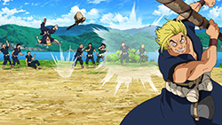 This episode was mostly set-up but still entertaining. The next big step in the science kingdom’s goals is an interesting one and ends up solving like 3 different problems at once. Also, Suika!Any manga readers notice the little Ukyo sighting? Pretty sure that wasn’t in the manga.