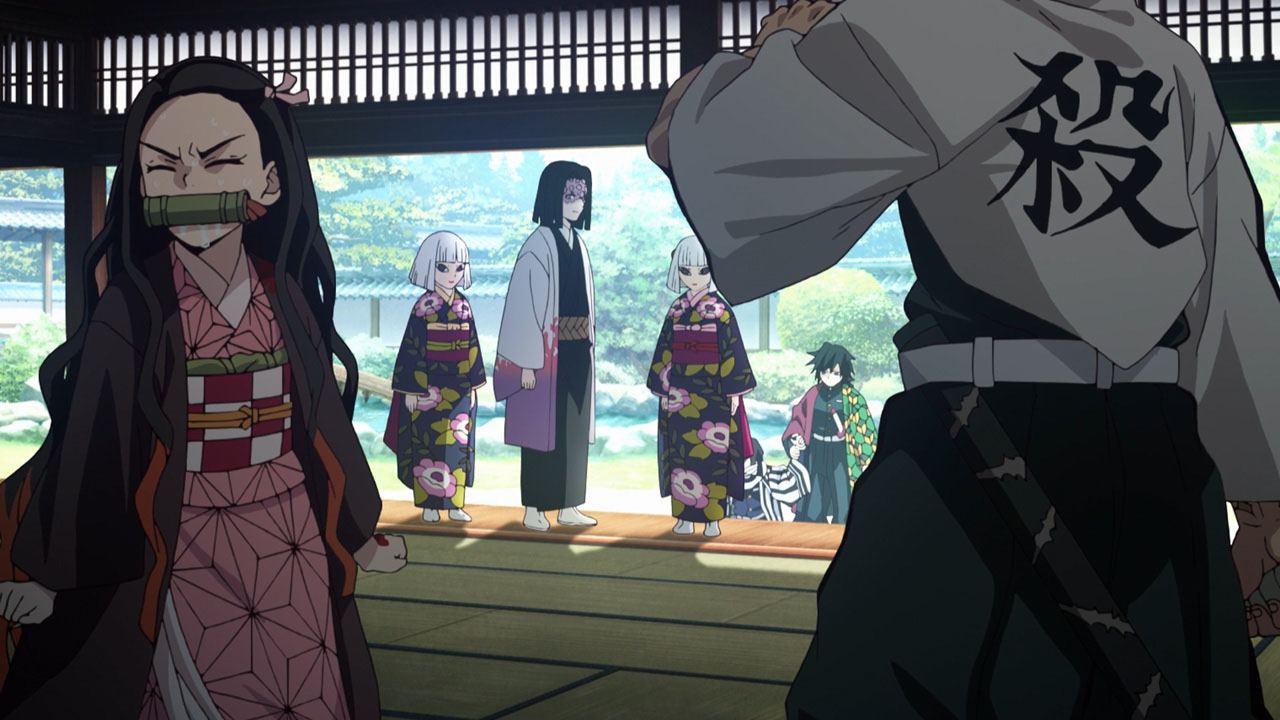 While I like Nezuko (although I imagine everyone does), I don’t think Sanemi was being a dick there.He had a real purpose to fulfill. If Nezuko dies, then there are no problems. If she lives and exists within the walls (or anywhere really), then she is a potential threat. The hashira would probably have to use their swords on themselves if they allowed that to happen.It needed to be a serious test that everyone could believe in. She needed to be pushed to her limit so that they could trust her. Consider Sanemi’s reaction to her spurning his offer she shocked him. Lots of things follow from her passing the test. Recall that prior to the test (last episode), when Kaguya asked everyone to accept the pair, five of the hashira declined. Now, everyone is in agreement, which I think is important for this type of organisation. The hashira will now let her come and go. With Kagaya’s words, Tanjirou now has a mission of sorts, or at least a goal, as well as a path forward. He’s no longer a nameless, featureless mizunoto, who are generally disparaged by the hashira. While his skill is obviously low compared to them, they now see that he might not be worthless. The hashira cannot casually mistreat either of the siblings.All of which means that Kagaya was able to lay some groundwork that will likely bear fruit in the future. He’s pretty clever. Even though he probably knew exactly what happened, having the doll describe the scene aloud ensured that everyone present was on the same page.As an aside, the artwork of Nezuko just before the OP was pretty impressive. I think the artists like her too.