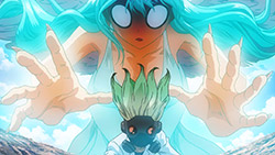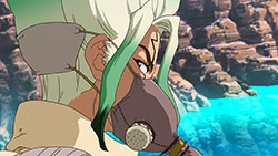Sulfuric Acid escapades aside, I was surprised to see the show give Ginro an opportunity to demonstrate he’s more than just a comic relief character (and foil to Kinro). With someone who has above-average physical abilities and was one of the first to accept science, you’d think that Ginro would have been a likeable character. Unfortunately that Taiju-like personality of his (but in all the wrong ways possible) has always made him stick out for all the wrong reasons. Constantly whining and making the stupidest faces, I was glad to see the fear of death knock some sense into him. Some sense that also gave him the encouragement to face his fears and act as the backup that Team Science needed in their time of need.