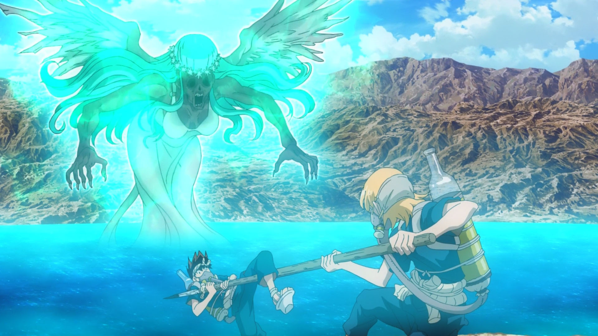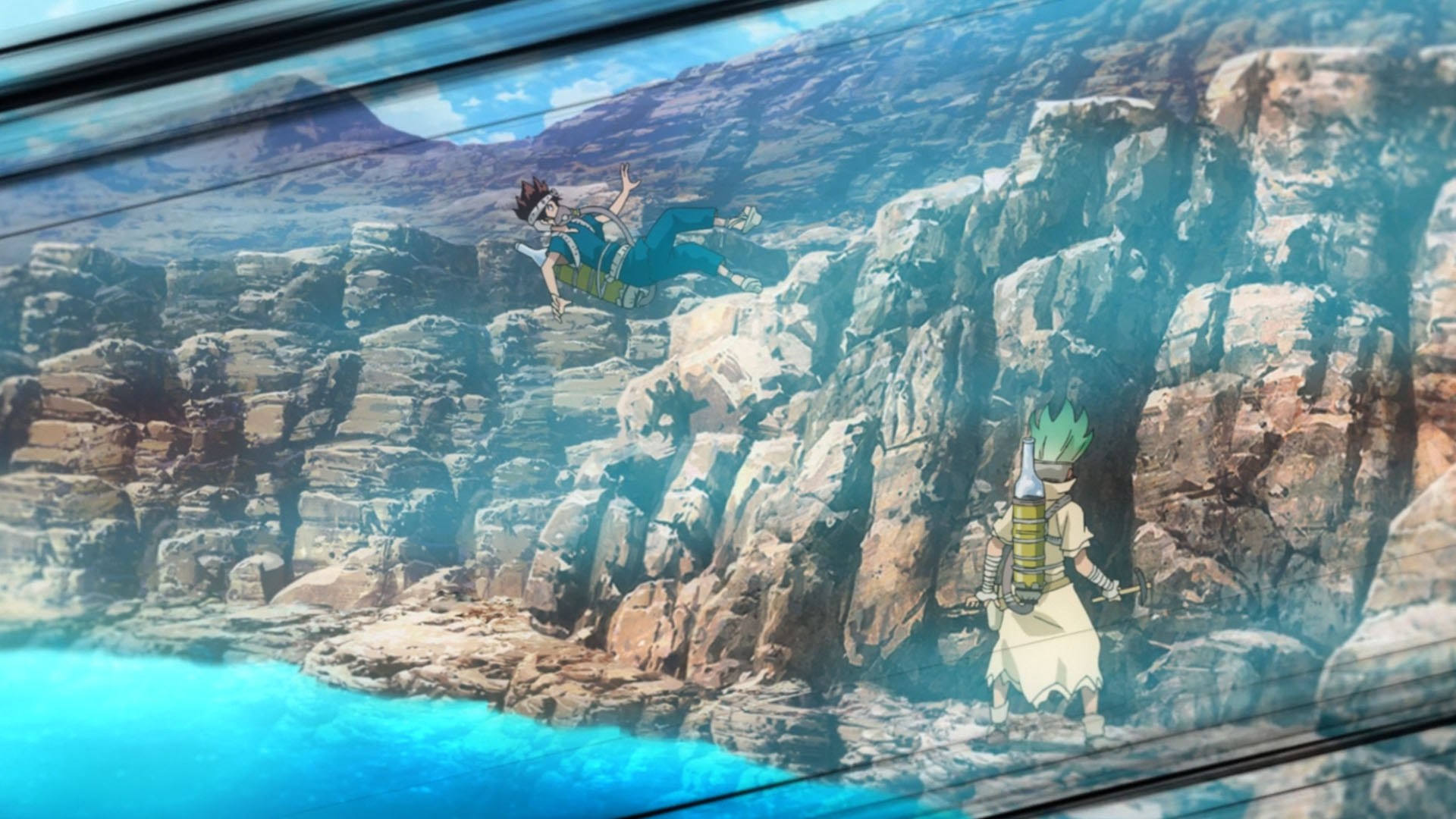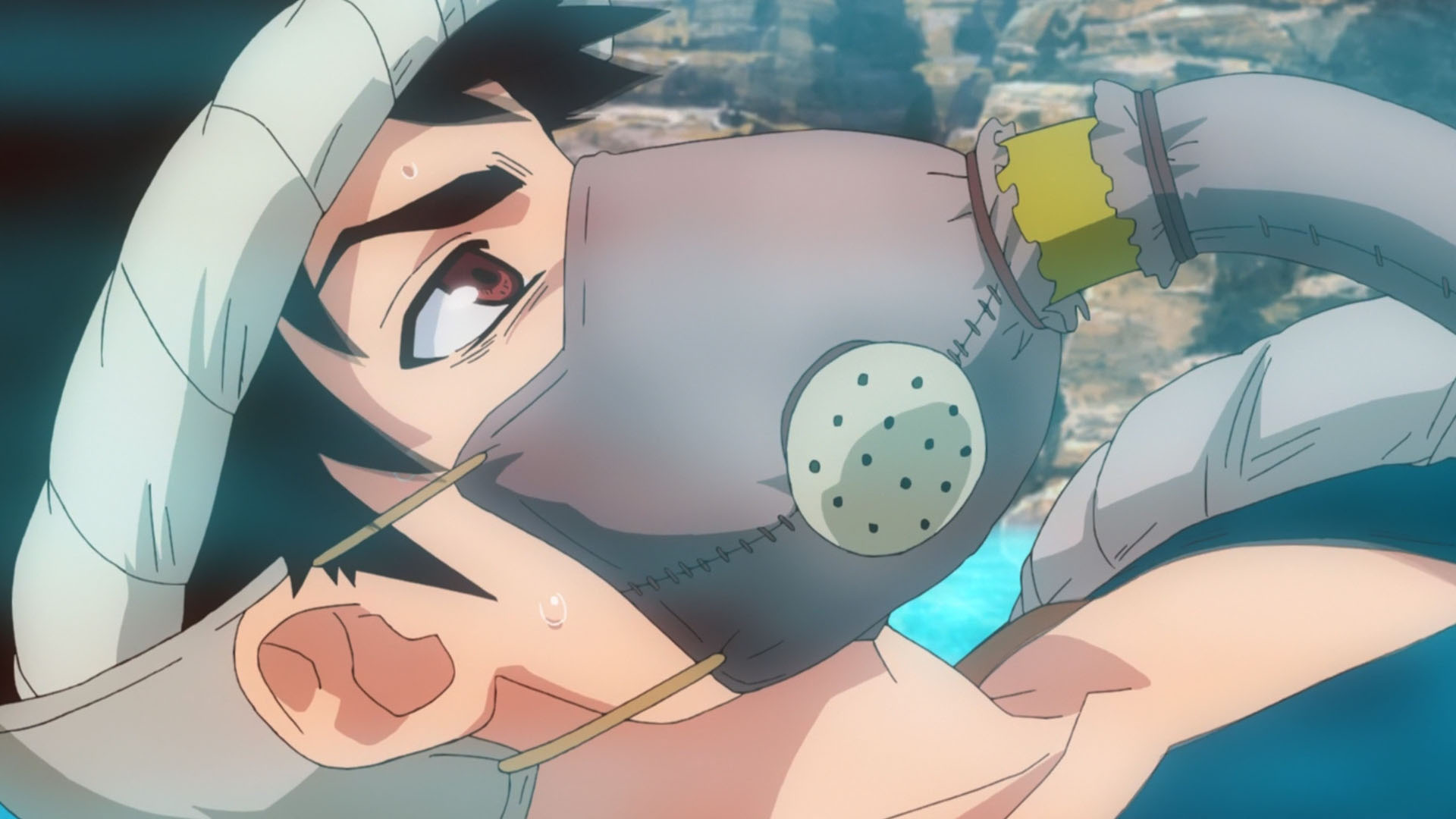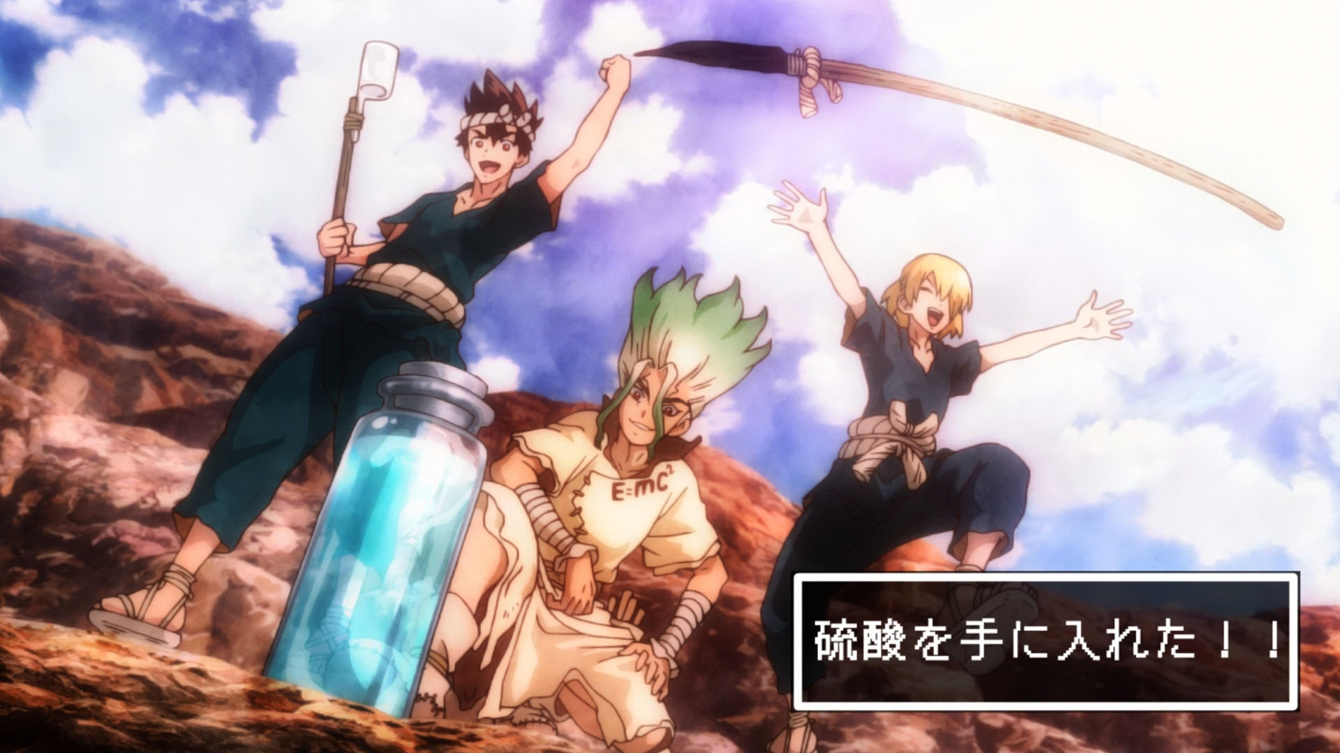 Being a good mix of character development and plot progression, this week’s episode touched on a few things I’ve been dying to see. The biggest of which was how the plot would handle difficult topics like the Kingdom of Science trying to obtain difficult-to-obtain materials like sulfuric acid. The funniest part being that while sulfuric acid is some pretty nasty stuff to get on your skin, the act of procuring the darn thing is actually what makes it difficult. Besides finding a suitable container to hold it in, trying to get past the insane barrier of deadly gasses would be impossible in a post-petrification world. All of which is what makes the act of actually getting some of that sulfuric acid insanely fun to watch when you account for Senku’s plan for doing so.