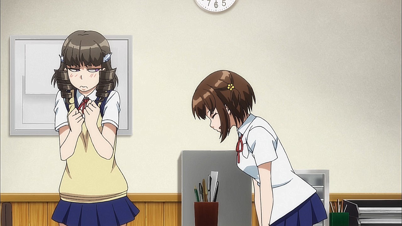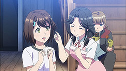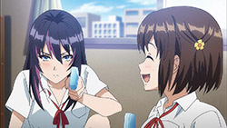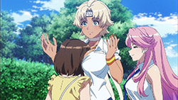 We hear plenty of humorous utterances of English phrases, but I found the outdated Japanese dialect that Emily spoke to be the funniest gag attached to these characters. Shamefully, I also laughed when the tension in Misa and Jennifer’s tug-of-war for the yellow dolphin was cut by a nearby train that caused each of the girls’ breasts to violently and unnaturally shake around as if they were slapping gravity in the face. The end of the episode may have been punctuated by Rin’s reluctant participation in a race against her two new friends, but it is nice to know we’ll be spending more time with Jennifer and Emily in the next episode.