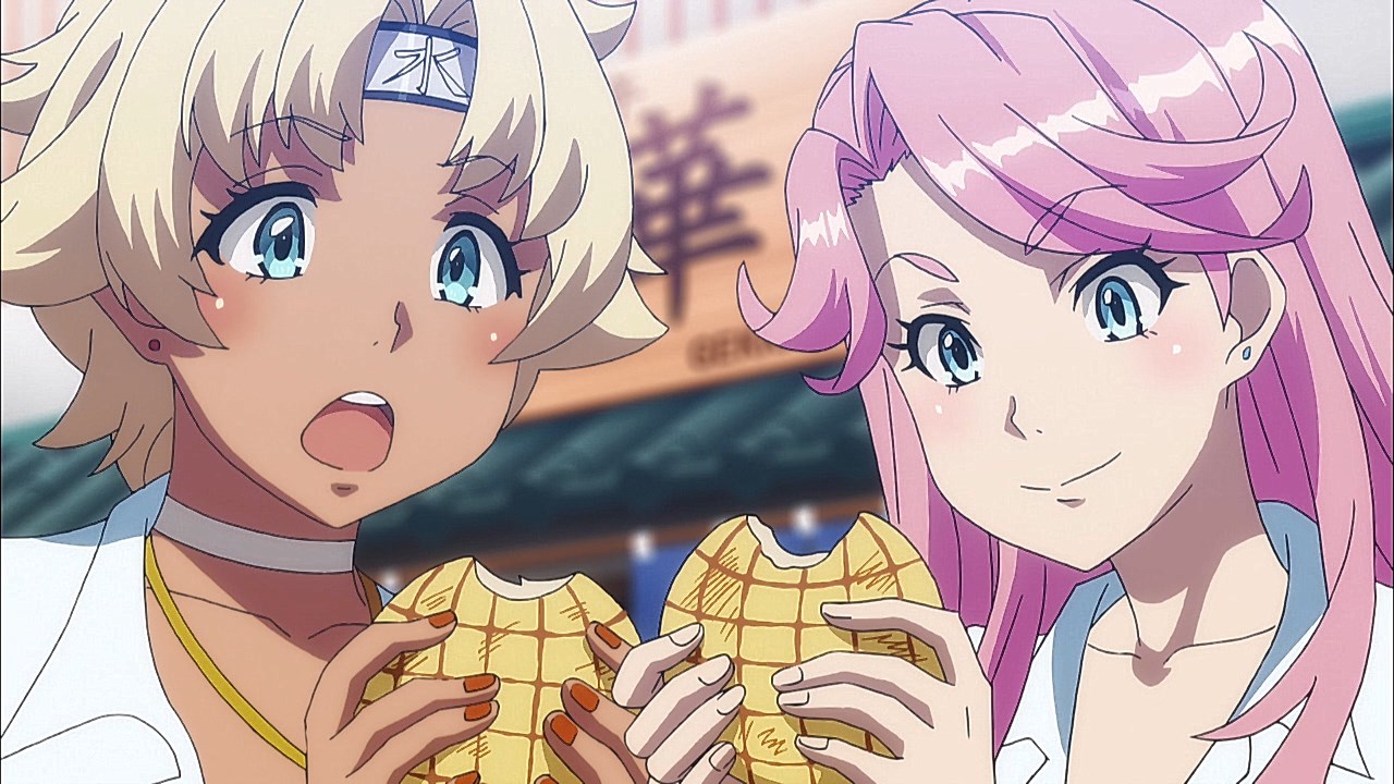 While the plot is legitimized by presenting Rin’s Jet Racing Club with the goal of being recognized as Tokyo’s highest echelon of racers, there are still moments of levity when we’re given more time with the foreign jet-racing duo of Jennifer and Emily. These two carry the distinction of fully embracing the stereotype of the goofy otaku who come to Tokyo expecting to bring their obsession with anime and Japanese nerd culture along for the ride. Jennifer and Emily’s hardcore otakudom is made charming by having them remain immersed in their experiences of Tokyo, whether it be through trying out the local cuisine or stopping by attractions such as the bathhouse that they visit so that we can fill our quota of uncensored chests in this episode.