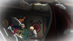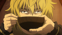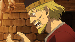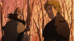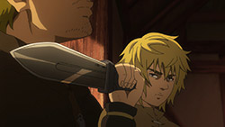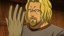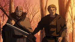 I wasn’t kidding when I referred to Canute as a “stepson” to Askeladd – I think he views both the prince and Thorfinn that way, even if his motivations are completely selfish. Askeladd is a user – using people is simply what he does. Thorfinn is useful to him, not so much as Canute is but ironically more than he was now that he can be Canute’s peer and friend. Canute’s symbolic value – to Askeladd, to Thorkell, to Sweyn – is obvious. Now that his emotional father has been ripped away from him, he must grow up quickly. And while that’s what Askeladd wants and why he did what he did, there are risks in this for him – for if Canute comes to understand his situation and decides to start thinking and acting in his own interests, he becomes extremely dangerous to Askeladd. And the same, ironically, can be said of Thorfinn…
