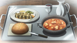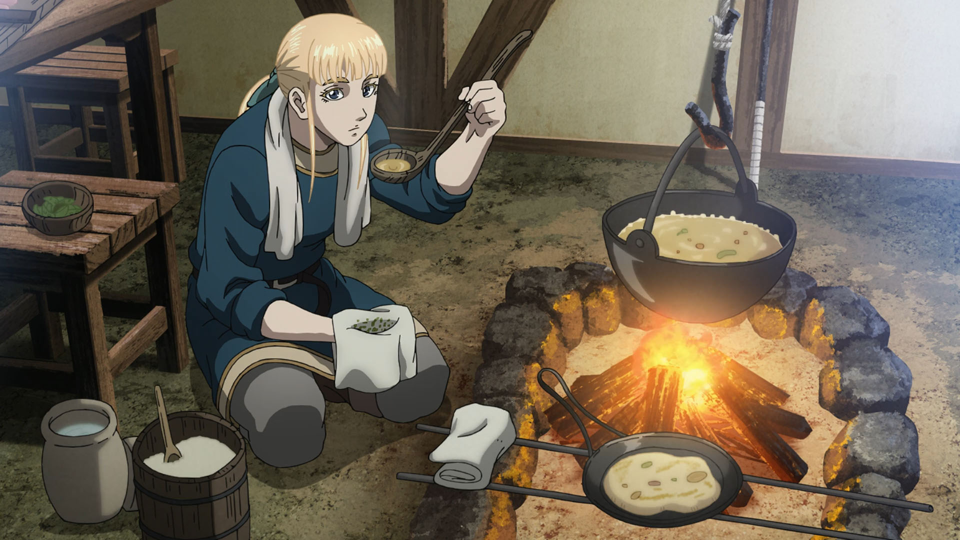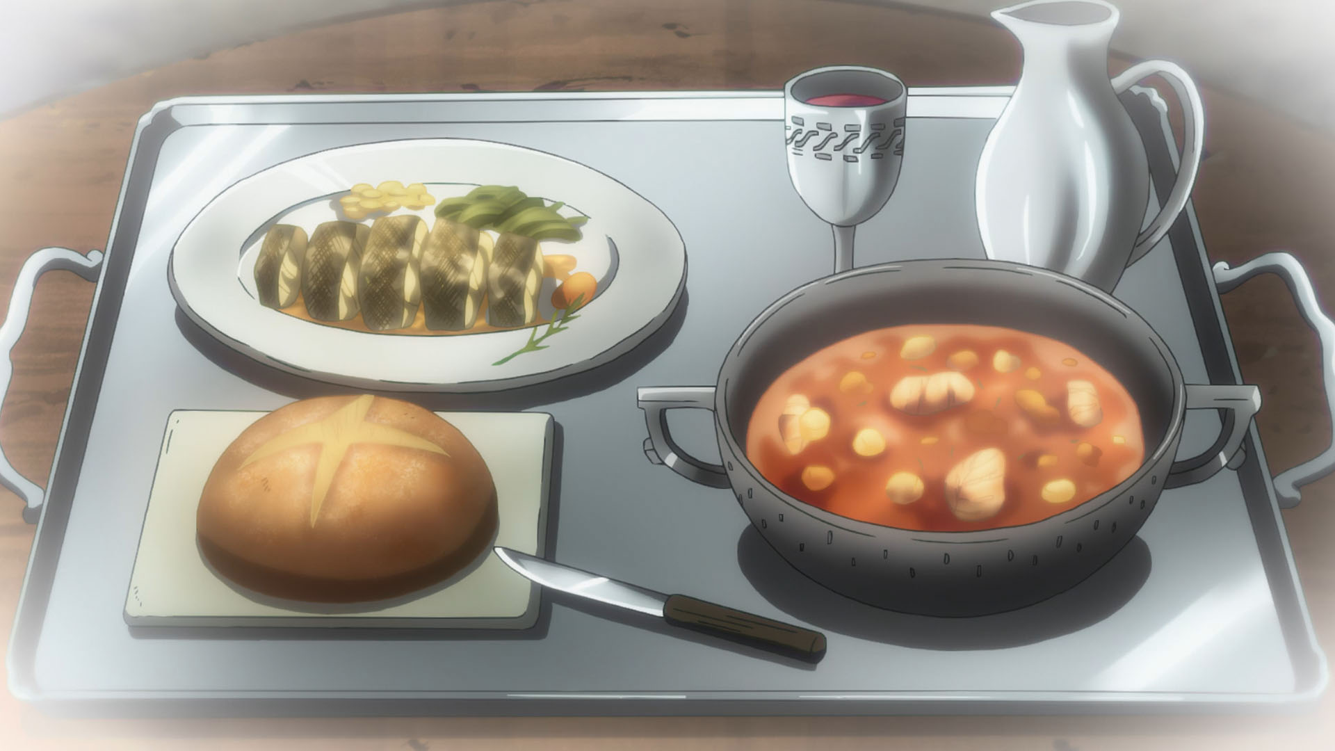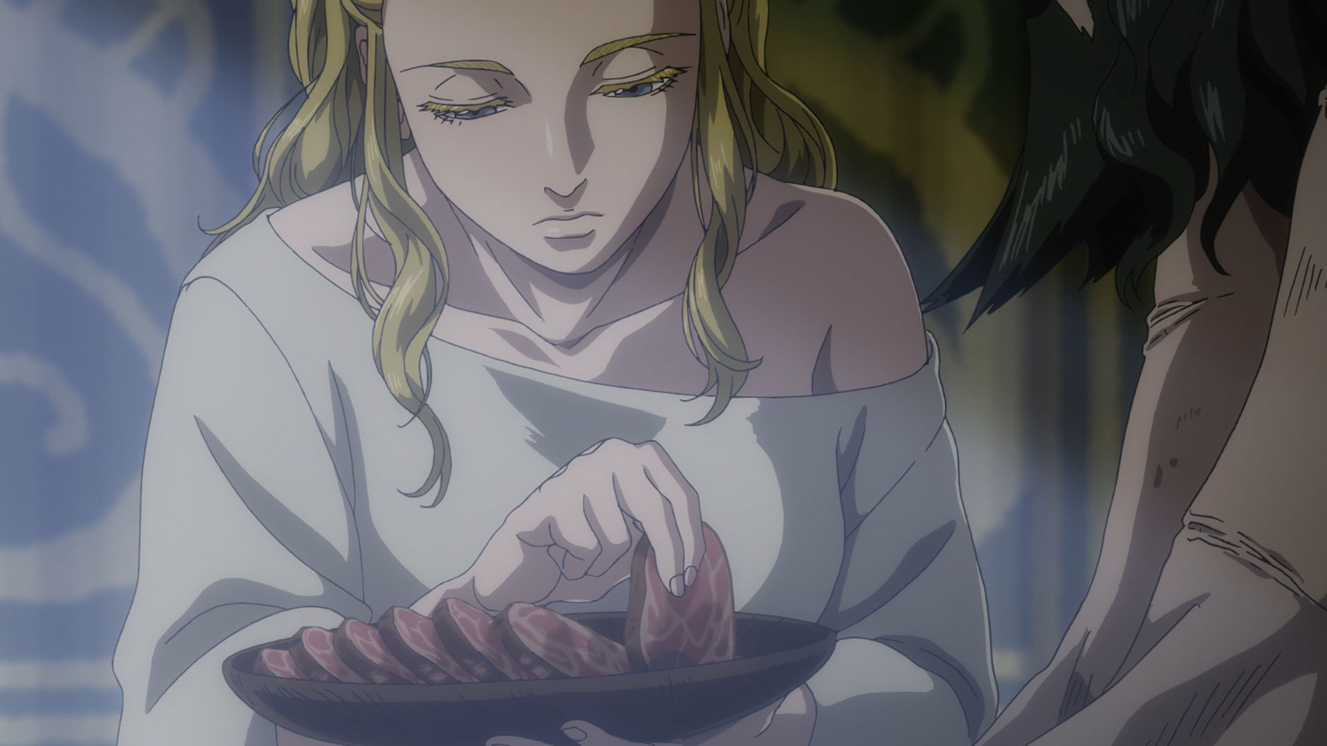 Had to find the manga equivalent (Vol. 5, Ch. 30 – “Master And Servant’s Dining Table”) and it turns out… No metal tray in that version, just a panel where King Sweyn rejects Canute’s cooking. (The other one was a panel of the meal Canute serves to Thorfinn, which was given a panning shot in this episode.)