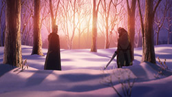 The matter of Karma is an interesting one where Vinland Saga is concerned, and I noted in my write-up last week my sense that Askeladd was not immune to it. Much is being made of Askeladd’s luck turning against him at last – heavy snow stalling his progress, Thorkell and the English discovering his location – but if one believes in luck, I think by definition they also believe in Karma. Askeladd is a real bastard – a magnificent one yes, but a bastard just the same. He’s a manipulator and a liar, someone whose only compass seems to be doing whatever he must to achieve his goals. He’s not exactly surrounded by saints, but even in this day and age Askeladd’s ruthlessness stands out because it’s so much colder and more detached than those around him (most dramatically Thorkell, perhaps).