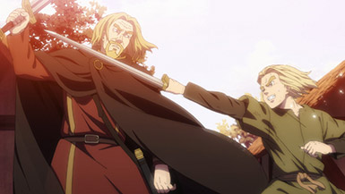 It is also because he feels bound by a survivor’s guilt to carry out his revenge, even though his father’s dying words warned him away from pursuing such a path. If you’ve noticed, he always stammers and enters a rage, proclaiming ‘If you hadn’t taken me hostage, my father would still be alive!’. Deep down, he feels that his decision to stowaway on the ship and consequent weakness directly contributed to Thors’ death. He’s never been able to get over it. Being able to beat Askeladd and claiming his life is also a way to alleviate the guilt and suffering, and so he tirelessly goes at it seeking to achieve revenge on conditional terms for over a decade.