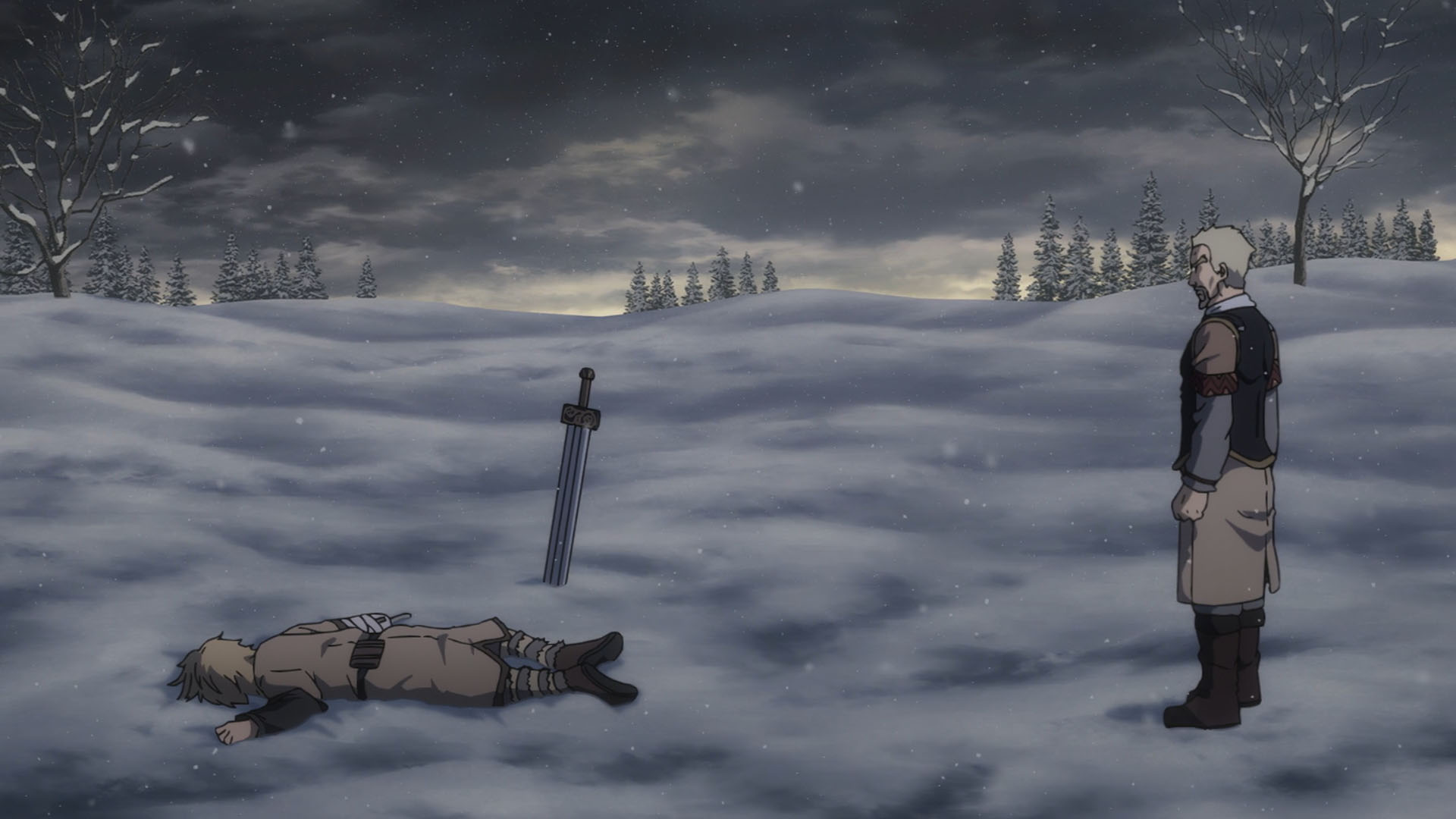 It’s not possible to judge the entire deviation yet. We only have one episode to talk about. However, I’ll give credit where praise is due. The anime original additions in this episode were fucking phenomenal and truly elevated it beyond the source material – in terms of precisely capturing the characterisations of Askeladd and Thorfinn. Despite being a hotly anticipated fixture, a very one-sided beat down takes place, after Askeladd throws away his sword to prove his point that Thorfinn cannot win, by virtue of being unable to control his highly exploitable anger. In a sagely foreboding fashion, Askeladd stops short of killing Thorfinn and decides to teach both Thorfinn and Canute the real way to kill a person that you hate. About not waiting for god to dispense his judgement, by taking matters into one’s own hands. Thorfinn, out of pity. Canute, because Askeladd respects him and desires for the boy to be king.