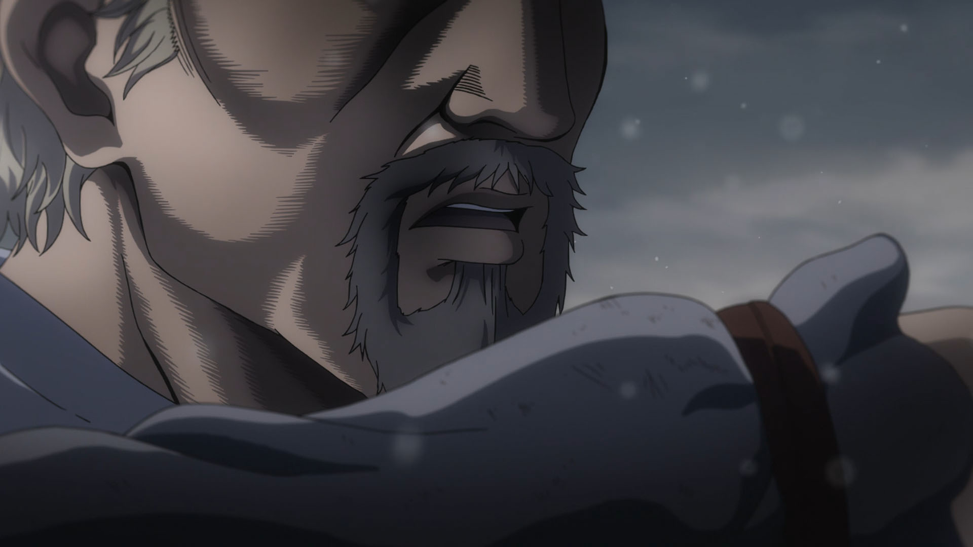 Most readers would have made this assumption, and the manga never explicitly spelt it out. But it was really gratifying when the anime didn’t hold back on the punches, with Askeladd explaining to Thorfinn that he was essentially his slave for the previous decade. And as if that wasn’t enough, he mockingly expresses his gratitude towards Thors. As Thorfinn reminisces about his life since Thors died, the realisation hits him extremely hard, and his scream of helpless anguish truly tore me up. You wouldn’t expect this all to be anime original would you? But it is – with Thorfinn giving no reaction to Askeladd’s revelations in the manga. Now, this is masterful storytelling, where it is more believable for a character to react the way they did in the adaptation compared to the original. For all my gripes about how the visuals might sometimes hold things back, they’ve clearly taken the face shadowing complaints seriously and brought it to parity in recent episodes. And it’s abundantly clear that the production committee understand Yukimura’s work, allowing them to continuously uphold and amplify the qualitative essence of Vinland Saga.