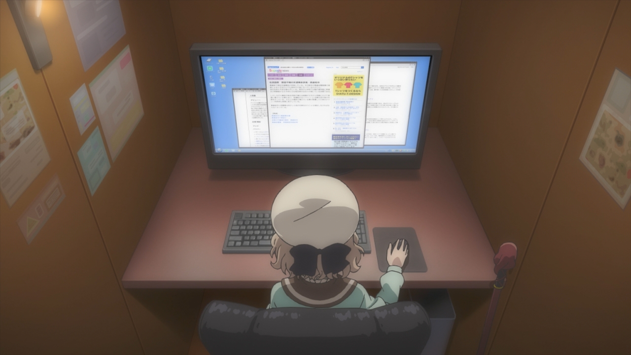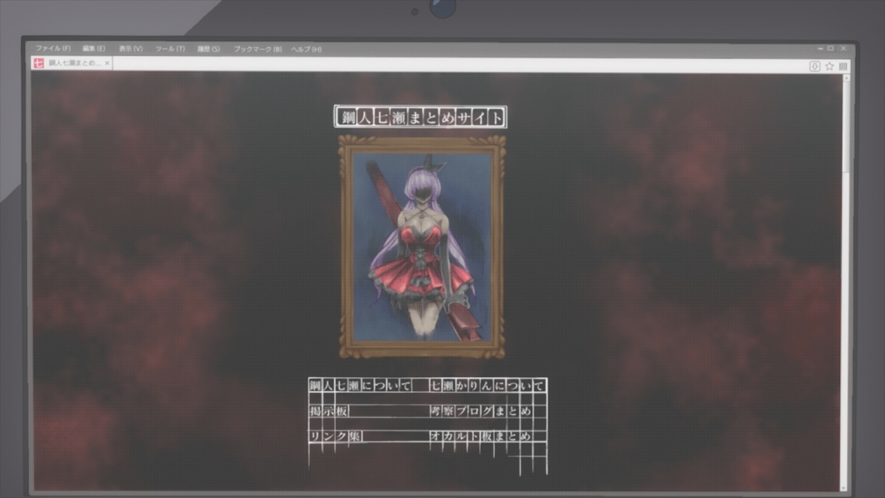 However, a more pressing matter remains at hand. Kuro has been missing for a week. And Steel Lady Nanase displayed an extreme amount of violence that both Kotoko and Saki reckon if left unchecked, will result in someone’s eventual death. Which leads us to our mystery premise – who exactly is Steel Lady Nanase and what possible motive could she have for rampaging across the city? That occult style website proved an excellent addition, giving me heavy spooks – and they made it a real thing for viewers like us to visit!