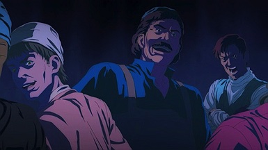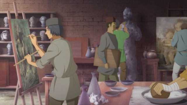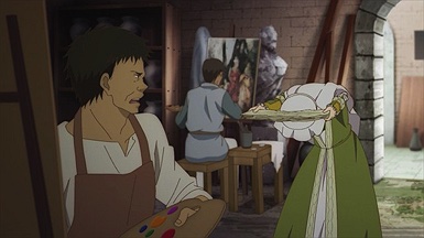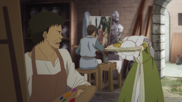 Let’s stipulate to a couple of things. Was it incredibly difficult for women to become professional artists in 16th century Florence? Absolutely. Did the few who managed it likely possess massive skill and determination? Certainly. So in that sense Arte’s story is perfectly plausible. As is the fact that every artisan in the neighborhood refuses to even look at her portfolio of drawings. It’s only after she threatens to cut off her own breasts in the street in order to stop being treated like a girl (I’d like to think she’s smart enough not to have gone through with it) and artisan Leo (Konishi Katsuyuki) stops her that Arte more or less lucks into an opportunity.
