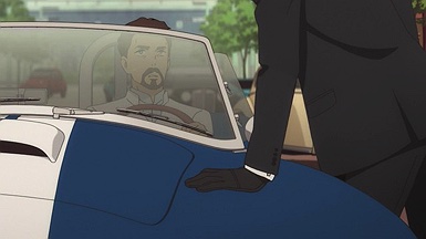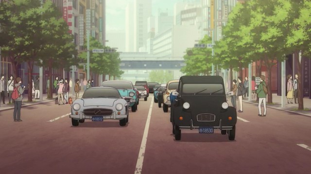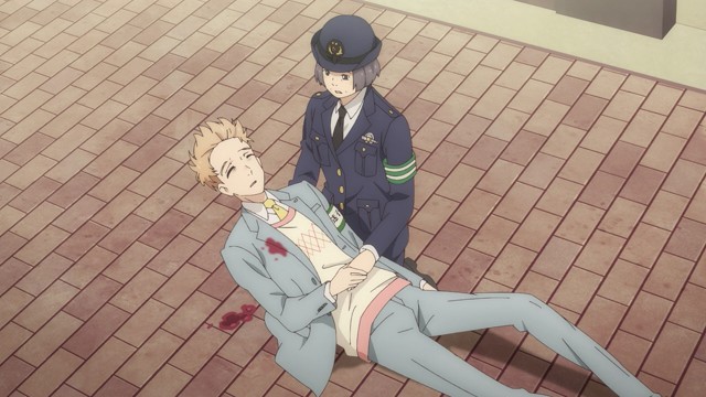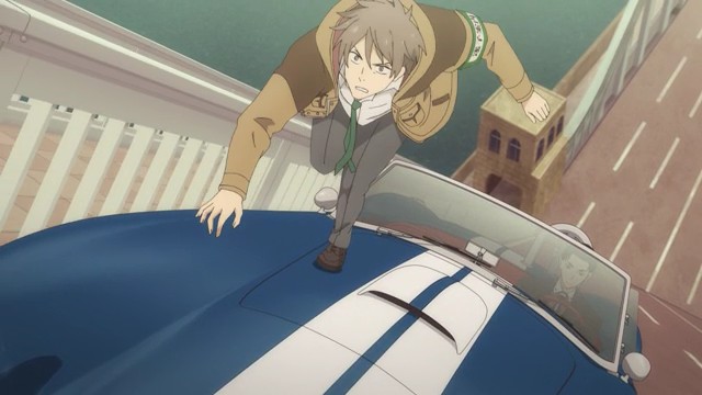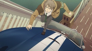 For a while, Fugou Keiji was looking like a pretty traditional cop story. Katou (Miyano Mamoru) works in the Tokyo “Modern Crimes” division – apparently a dumping ground for the police department’s problem detectives. He used to work in the prestigious First Division but was seemingly blackballed, presumably for being too gung-ho and inflexible about justice as he sees it. His colleagues are a group of oddballs and misfits including Kamei Shinnosuke (Kumagai Kentarou), who gets paired off with Katou on security duty for a classic car show (I noticed the crowd was animated wearing masks – a late addition?) in Ginza.