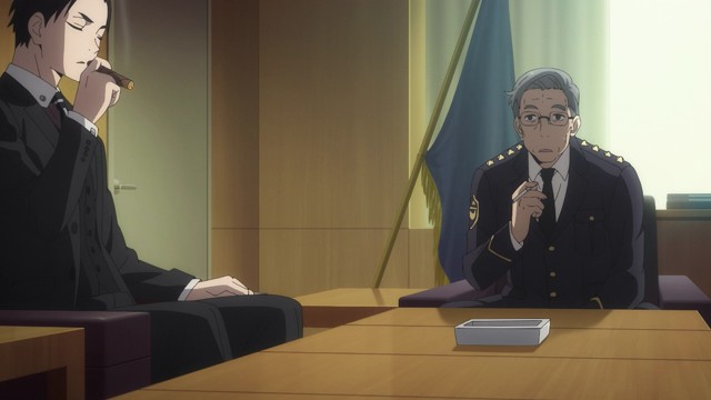 Kanbe is an extremely rich dude who like to play detective as best I can tell. Except he had some sort of “special training in England”, whatever that means. He buys his way into the department, specifically requesting the Modern Crimes unit for reasons not yet clear, and proceeds to literally bulldoze his way onto the bomber case. His deal? He takes what he needs and destroys everything in his way, paying double the incurred cost via some serious e-checking and his butler. The bill for the first episode is about ¥1,370,000,000 (roughly $130 million).
