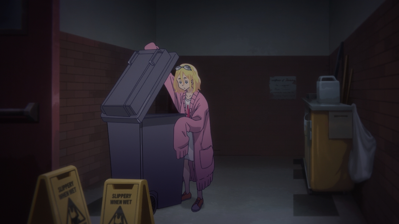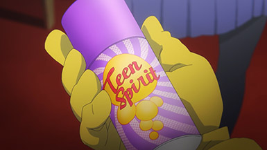 In the last episode, we were introduced to the Valentines who quoted a variety of lyrics from My Bloody Valentine songs, and in this fourth episode, Nir (Kugimiya Rie), an awkward and depressed student, quotes word for word lyrics from “Smells like Teen Spirit”, one of Nirvana’s most notorious songs. Honestly, if I didn’t pay attention to these small details, I don’t think I would notice the depth the series is providing.