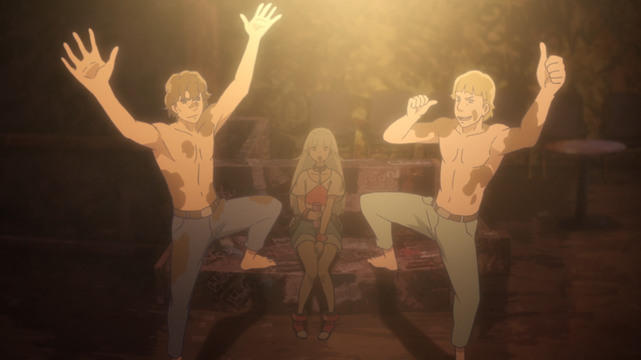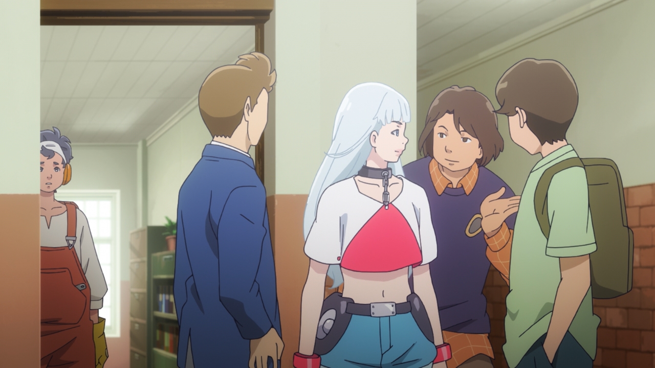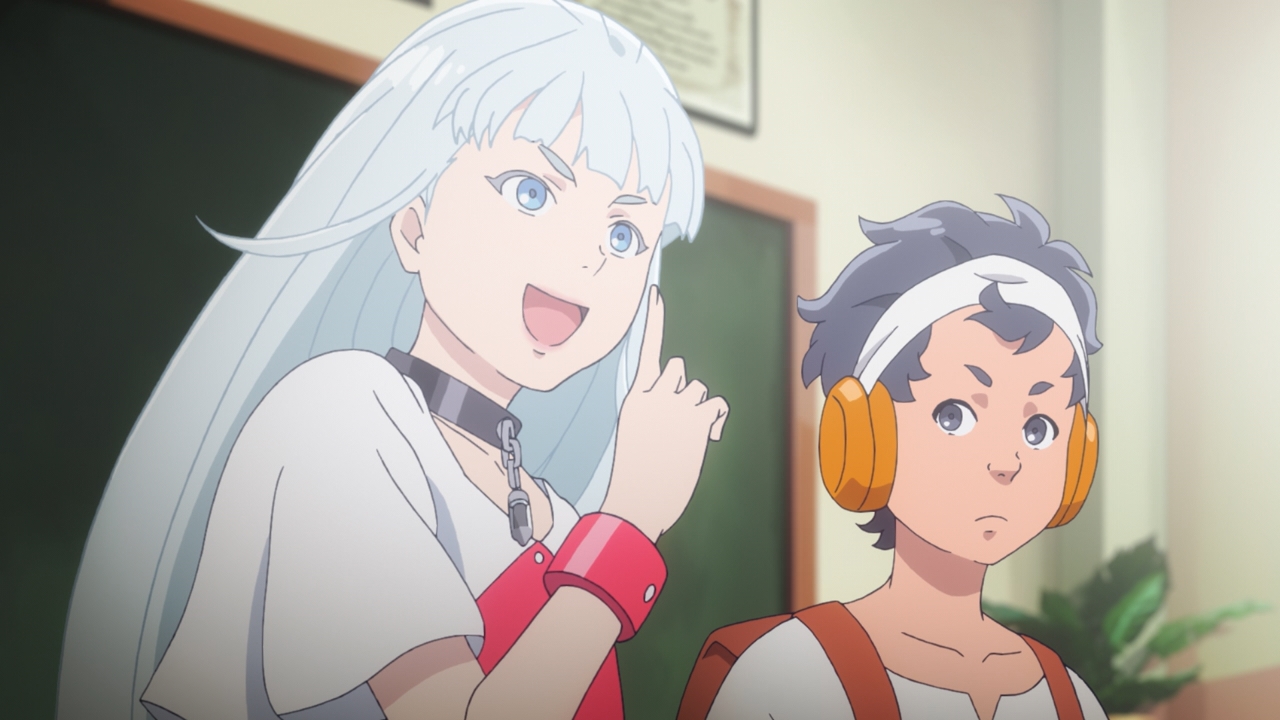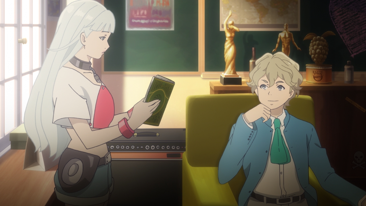 Having short stories within each episode is an interesting way to introduce viewers to a wide range of music while exploring this vast territory making up Echo and Myu’s world. This series was built around a love for musical genres of all kinds, whether rock, alternative, industrial, grunge, and now headed into Funk. These constant references to real-life bands and musicians make the character design really fun. Like, how can you not recognize those famous ‘Smells like Teen Spirit’ lyrics? Everyone has sung this song and listened to it at least 100 times, right? Or was it just me?