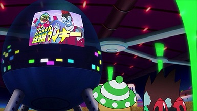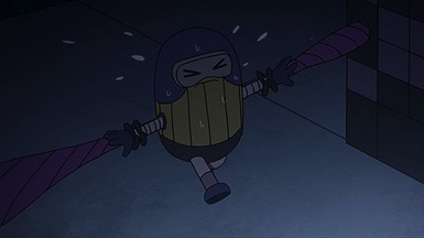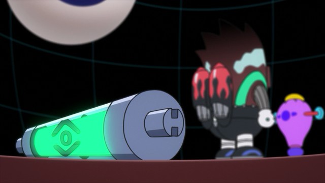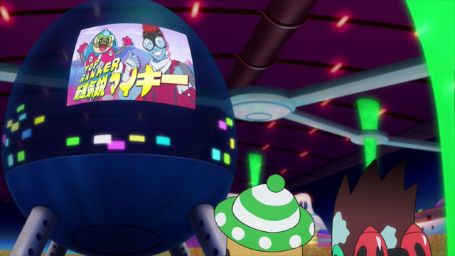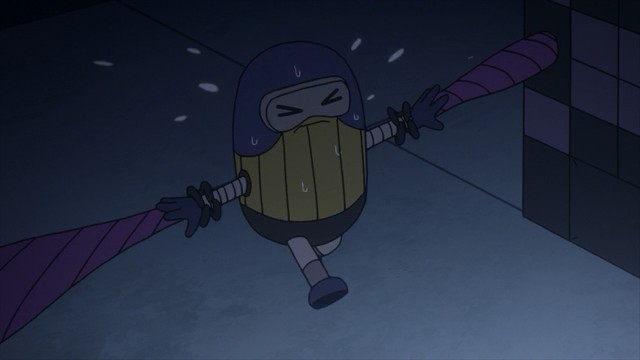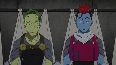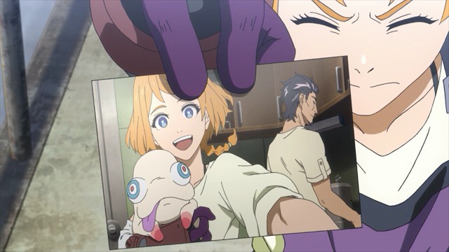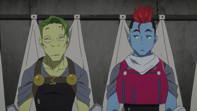 That’s exactly what Kaburagi-alien seems to have decided to do. By flashback (7 years), we see him as part of a crack team of ranked gears (given that two of his teammates are Donatello and Mikey, we clearly have a TMNT fan in the writer’s room). The catch here is that this Deca-Dence simulation the aliens are involved in is apparently physically real, possible even on Earth (Eurasia). If they take off their limiters, they can enhance their abilities into the game while also subjecting themselves to physical harm. Pain junkies are into it, it seems, but Mikey wants to do it so he can move up in rank – and it’s Kaburagi who shows him how. When the boss finds out, Mikey is scrapped and the team is broken up, and Kaburagi is forced to work for the boss, eliminating “bugs”.