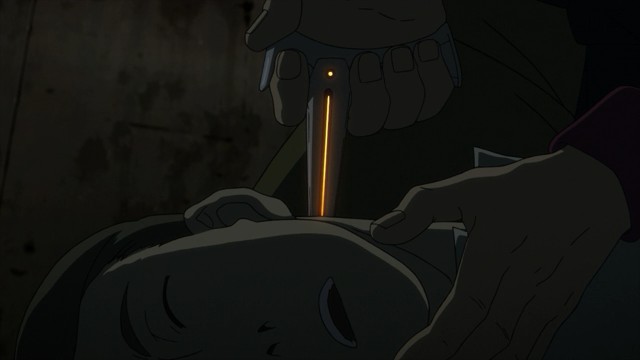 Kaburagi is supposed to be around for 175 more years, apparently, but he’s had enough. The annoying little human Natsume sparks enough curiosity in him, however, to get him to shoot up on Oxyone and keep plugging along. She’s supposed to dead – “processed” – but the system probably thinks so because her ID chip was in her lost arm. She’s an anomaly and that interests Kaburagi, who decides not only not to die but to accede to Natsume’s request and train her up, just to see what happens.