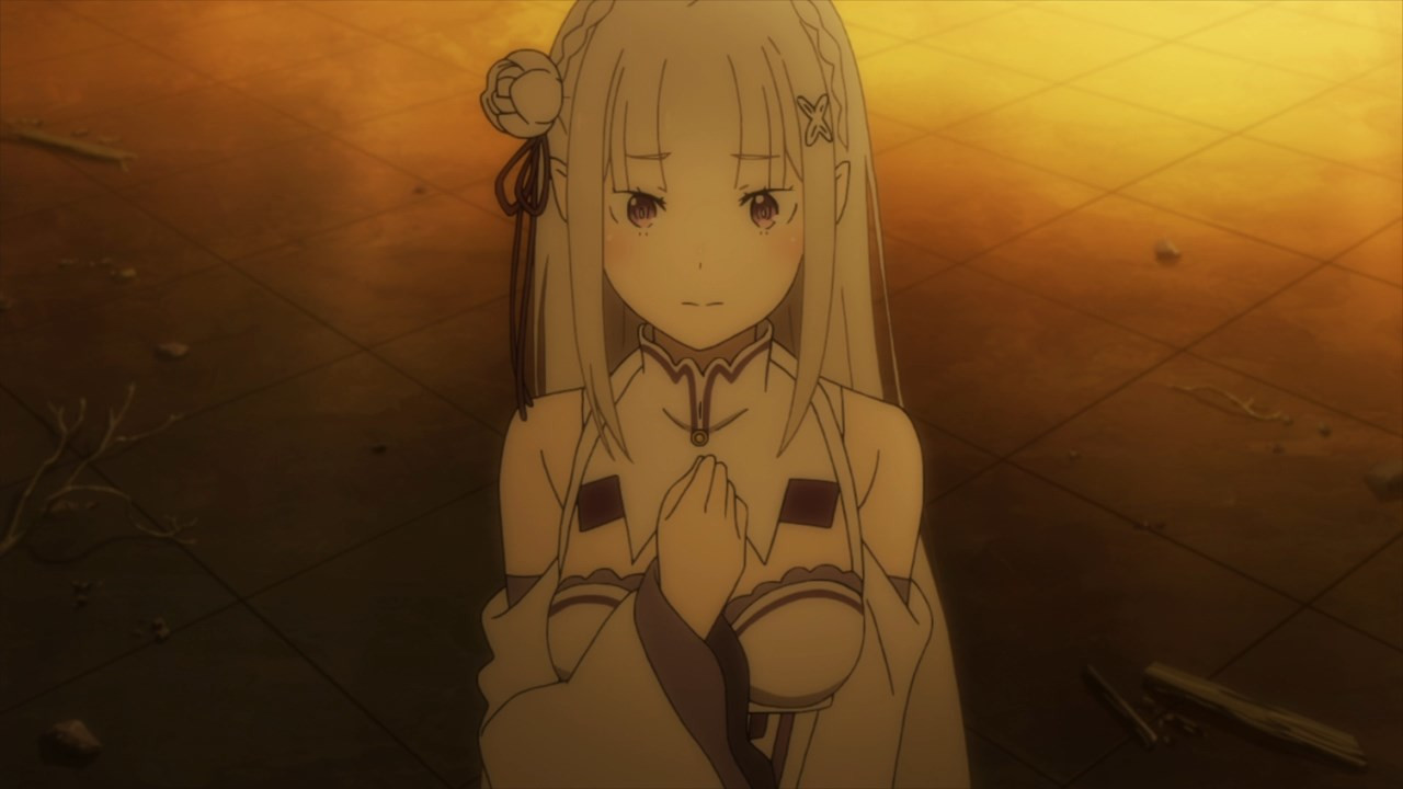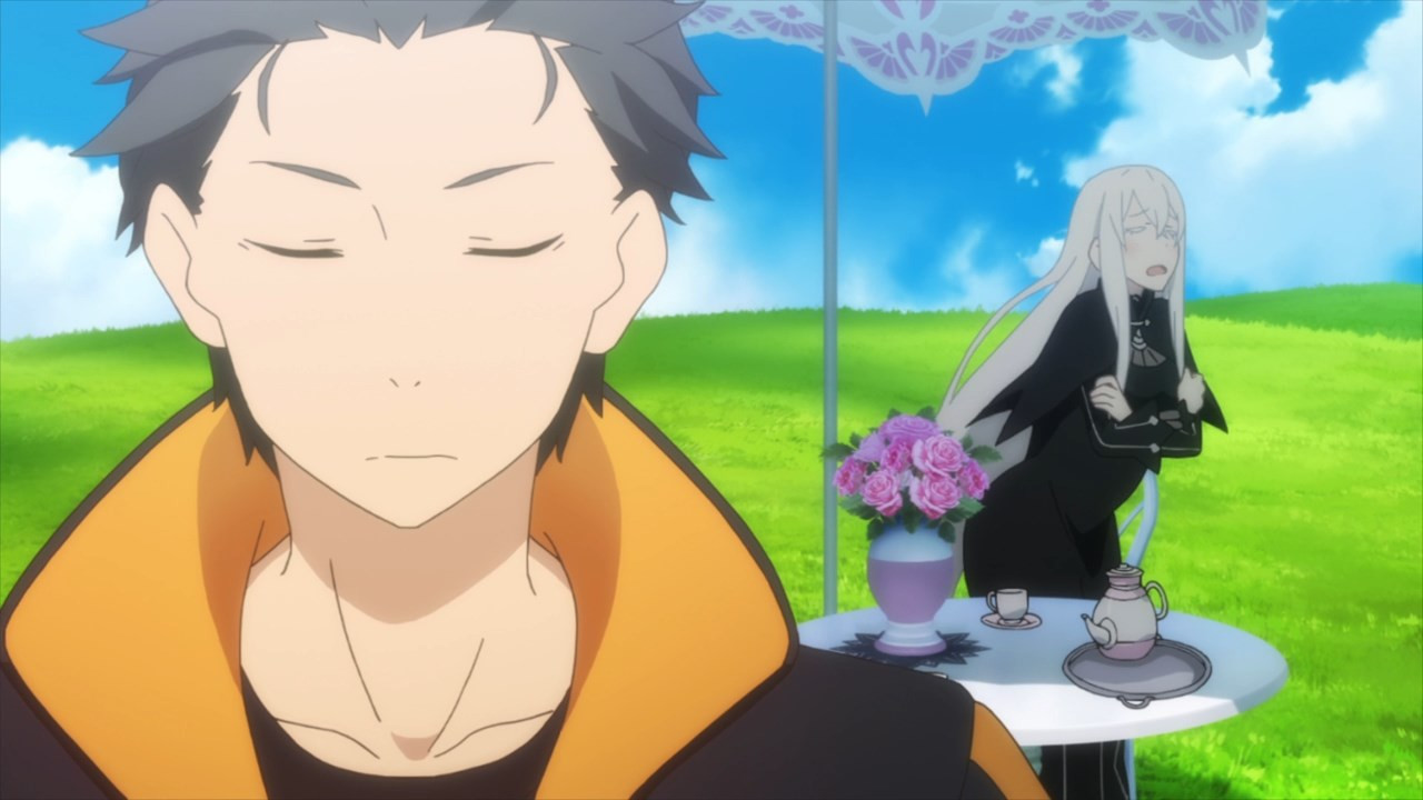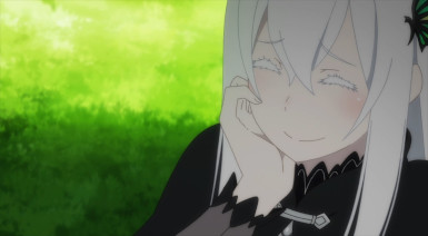 Echidna’s the embodiment of the deadly sin of Greed, but she still comes off as an affable being towards Subaru. Hope she’ll appear again later in the season, especially since she holds a ton of knowledge about the world Subaru’s in and he seems to have the means to meet her. (At least, that’s how I interpreted the scene.)