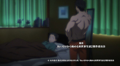 On a more trivial, on-topic note, three episodes in and no “Call of the Witch”. Will Subaru be “returning by death” a lot less this season? (And I have a hunch the posters in Subaru’s room are promotional material for some other light novel series.)