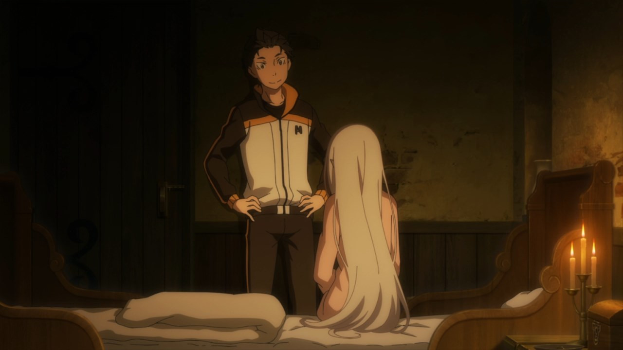 Gentleman (and ladies): say hello to the patented death spiral. It took long enough for Re:Zero to get past the niceties, but now, at last, we’re in the thick of things. Subaru dies; he awakens; death begins a new; something, somewhere, changes, and the whole process begins all over again because suffering never gets boring. Ever. We can pretty well guess a major shakeup is coming sooner rather than later, although the specifics of it right now remain firmly in doubt.