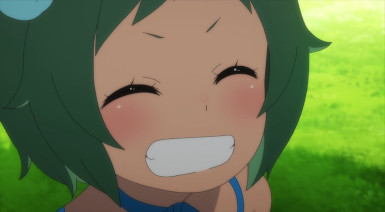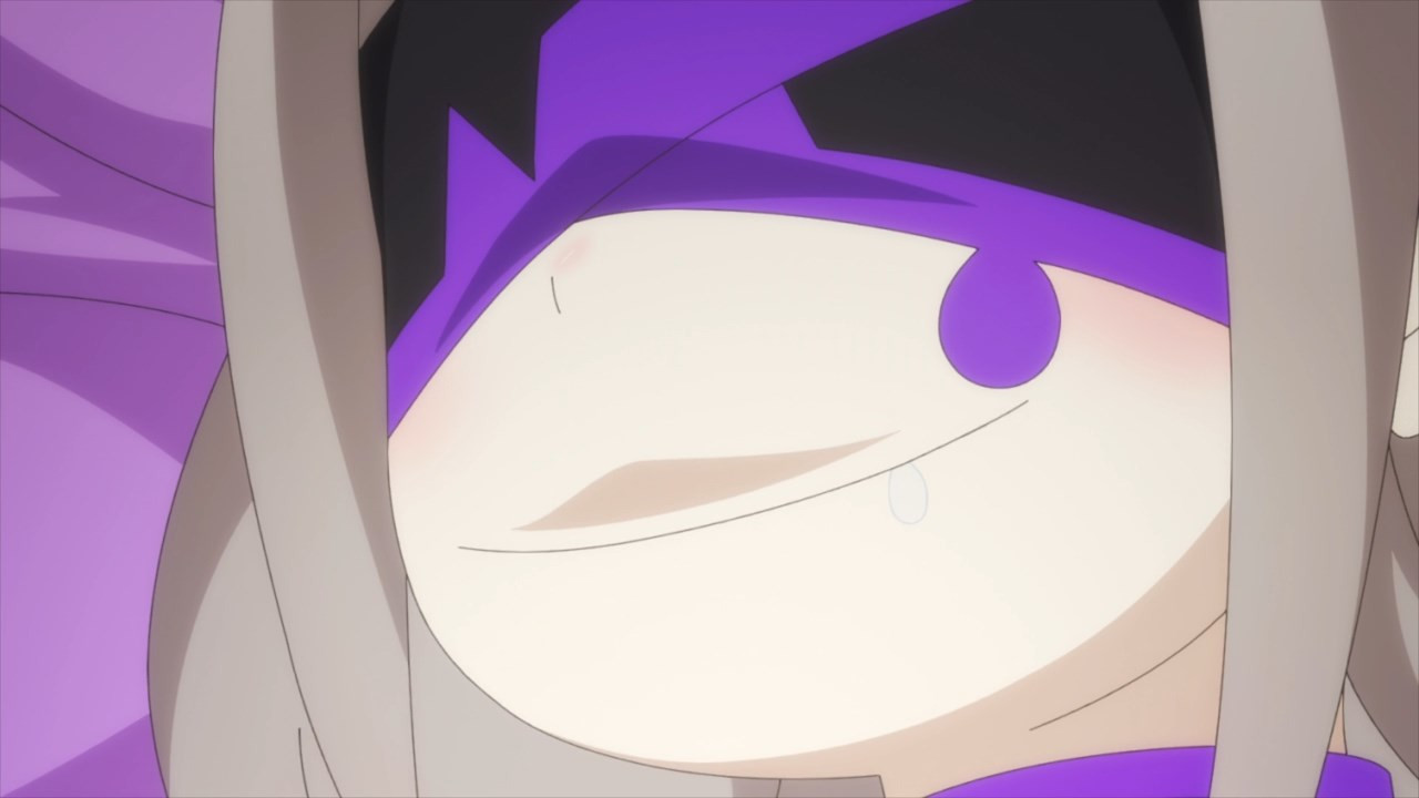 – Satella’s appearance (and madly repeating “I love you”–including in that title screen)… Yeesh. *shudders* And at this point, that felt like Rie Takahashi at her most creepiest. So creepy that Megumin would definitely say, “You’re freaking me out!” before hightailing it outta there. (OT: Incidentally, from my favorite episode of KonoSuba season 2, which also includes Aqua’s famous “cry cute” scene.)