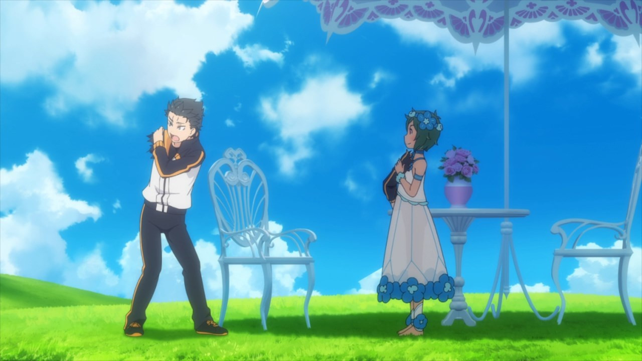 She said she has no hope of getting Emilia to break her out of her shell, but maybe Subaru could do it since he’s intent on doing everything over and over again.