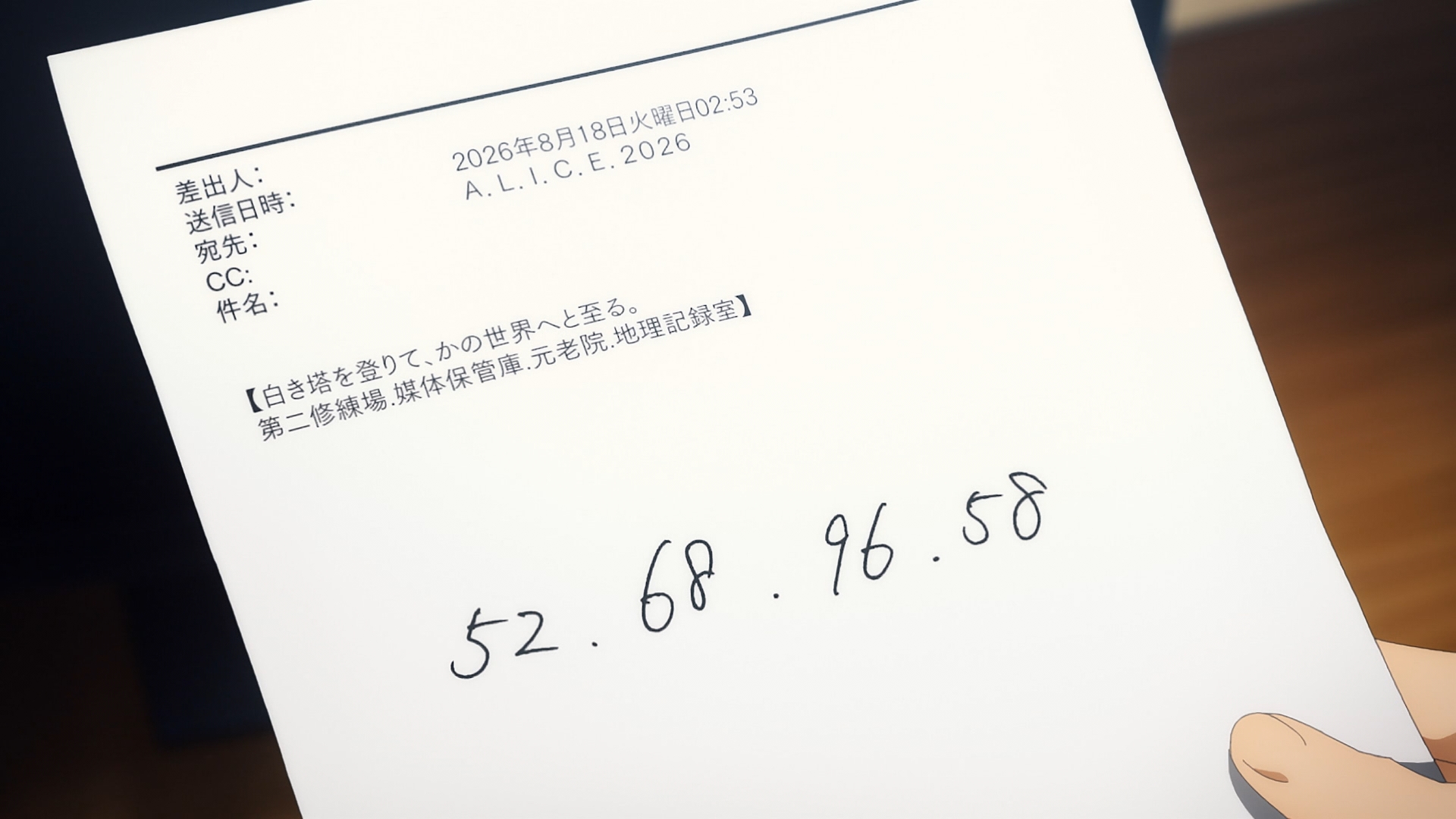 For those who are skeptical of a random address, this is the IP address Alice received in the final episode and redirects to a lovely easter egg. Thanks, Elievelton 🙂