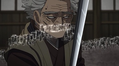 Hijikata shows great respect for his mortal enemy here – even admitting that the ideals of the Imperialists might have been right all along. He gives the hitokiri what he wants, a death by the sword – but Youichirou declines an easy dispatch on the grounds that he’s unworthy of it. The sense of confusion and grief the old man is suffering though is depicted brilliantly here (Suerhiro Kenichirou’s music is once again integral). And so is the discomfort this forces on Hijikata. The old lion isn’t much younger than Youichirou, yet he struggles onwards with a new purpose. Being reminded of how long he’s been a relic surely can’t be pleasant for him.