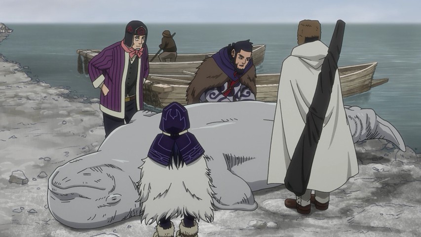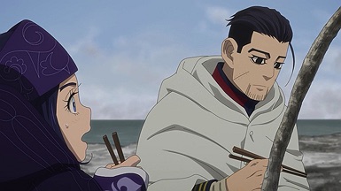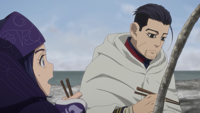 The two other major poles of the quest for the gold appear only briefly this time, on either end of the episode. Sugimoto declares that he’s figured out a secret about the code of the tattoos, though he declines to share it with Koito. And Asirpa’s group proceeds deeper into Russia, where Kiroranke declares that rather than simply free Sofia, he intends to free all 250 prisoners at Ako, thus making it difficult for Sofia to be tracked. To do this he’ll steal the explosives from a local lighthouse and blow the prison walls. He still thinks like a revolutionary – which gives Kiroranke something in common with both Hijikata and Tsurumi. As for Ogata, he finally admits Asirpa’s cooking is hinna – though don’t expect him to do so on command…
