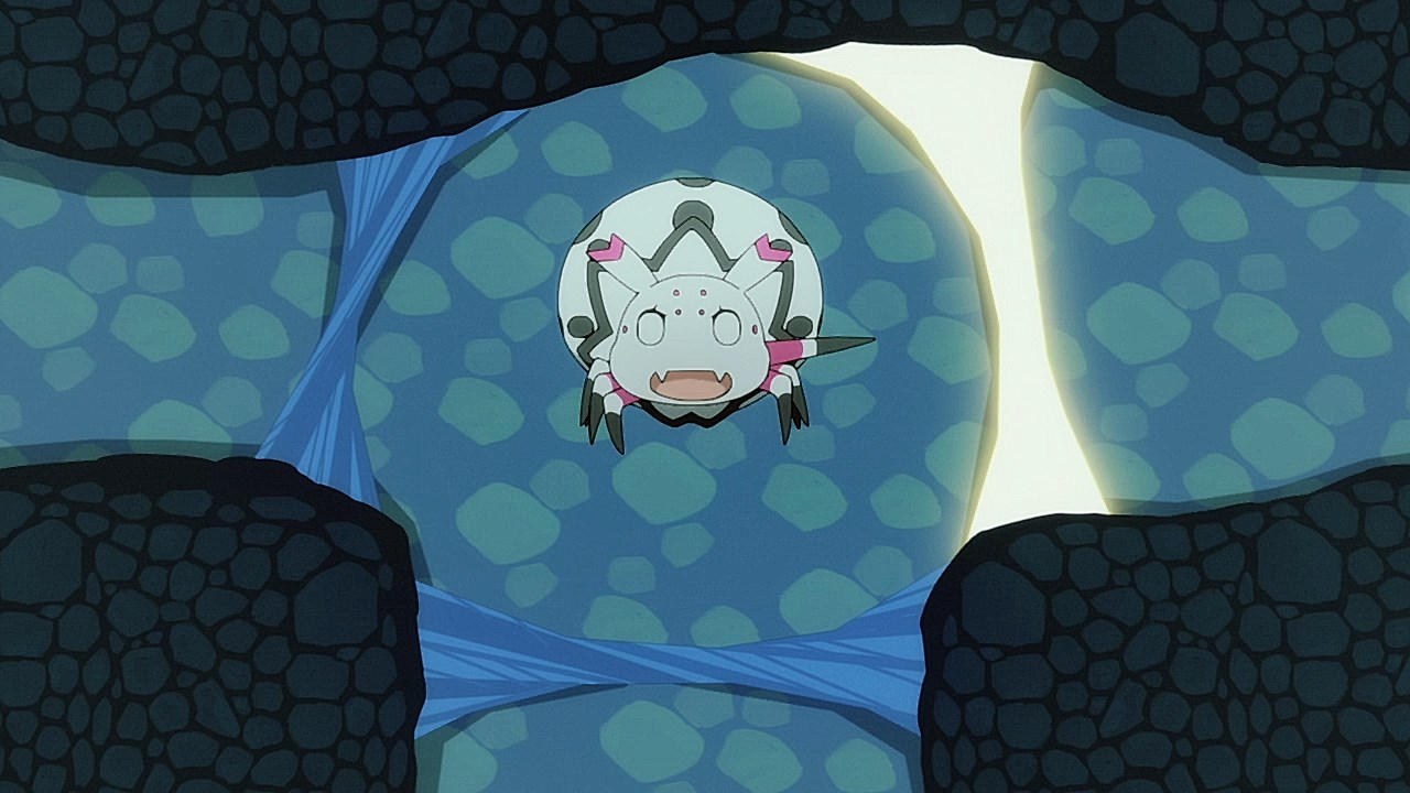 It also helps that Kumoko as a character is amusing for how she tries her damndest to make the most out of her life as a spider regardless of the setbacks she faces. Discovering she was stuck in an RPG where her stat increases could unlock new abilities was a revelation until she found out that, in this universe, the Appraisal ability didn’t work out how she thought it would. The funniest moment in the episode had to be when she decides that the first thing she should do with her webbing is to create a nest and do an MTV Cribs segment on her new furnishings. Her astonishment and disgust about the things she has to do to survive provide some humor with how often she’s impressed with herself for making it as far as she has.
